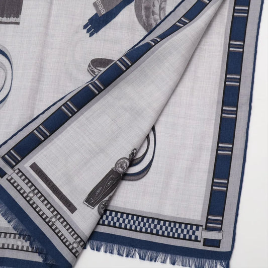 Hermès Lettres Equestres Cashmere & Silk Scarf Navy x Gray