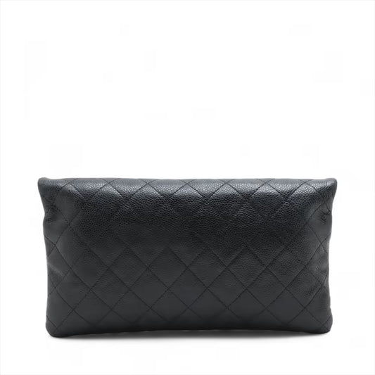 Chanel CC Logo Matelasse Caviar Skin Clutch Bag Black