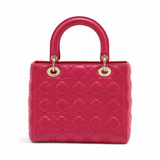 Christian Dior Lady Dior Cannage Leather Handbag Hot Pink