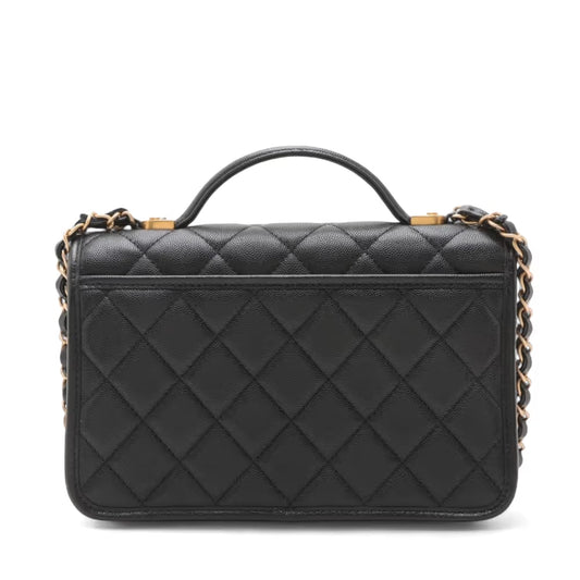 Chanel CC Logo Matelasse Caviar Skin Two-Way Shoulder Bag Black