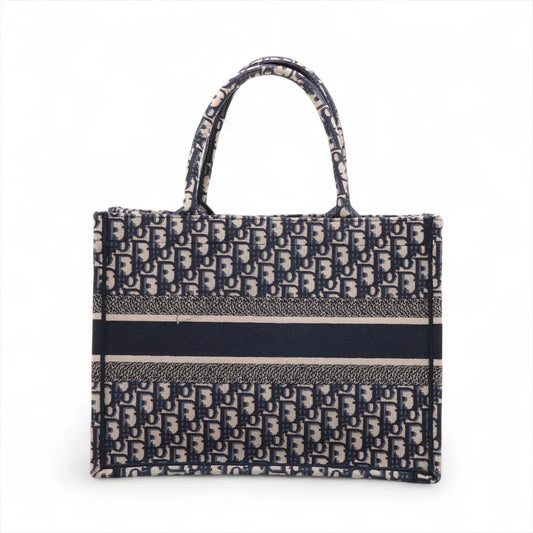 Christian Dior Oblique Book Tote Medium Canvas Bag Navy Blue