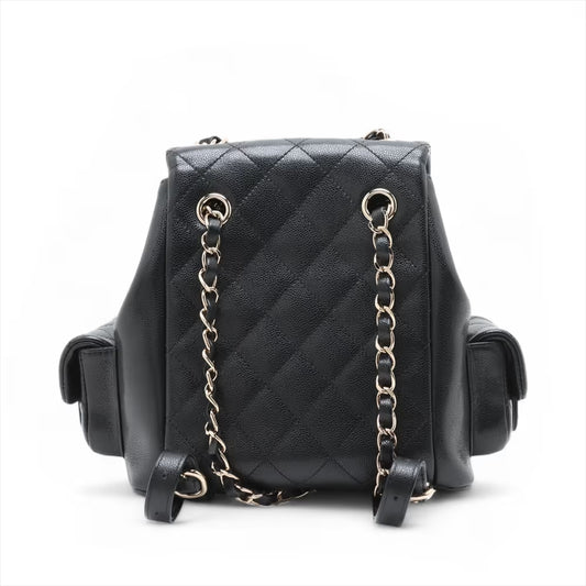 Chanel CC Logo Matelasse Caviar Skin Chain Backpack Black