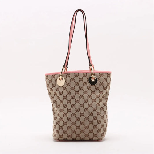 Gucci GG Canvas Canvas Leather Tote Bag Beige x Pink