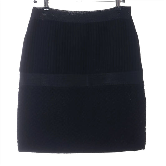 Chanel CC Logo Glitter Wool Knit Skirt Black