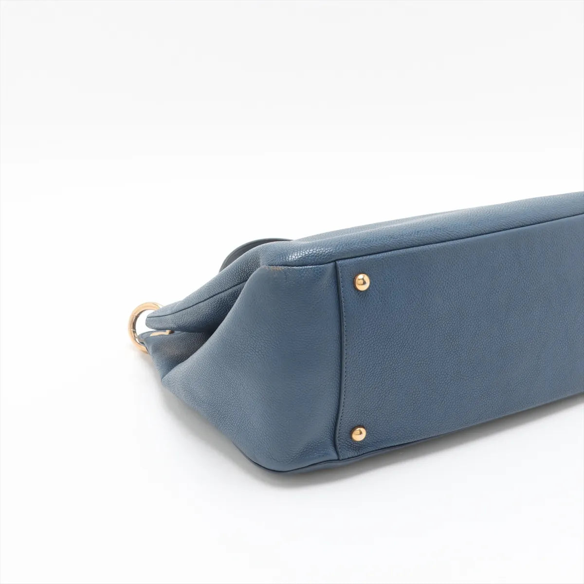 Chanel CC Logo Caviar Skin Two-Way Handbag Blue