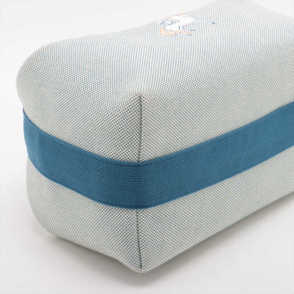 The Hermès Bride A Brac GM in white and blue is a stylish and practical accessory that reflects the brand’s refined craftsmanship. It features playful embroidery of a unicorn and a child, adding a whimsical touch to its refined design. Accented with a sturdy top handle for easy carrying. Crafted from durable Toile H canvas, it features a minimalist design accented with contrasting blue details for a fresh and modern look. The pouch opens to a spacious interior, providing ample room for organizing daily essentials or travel necessities.
