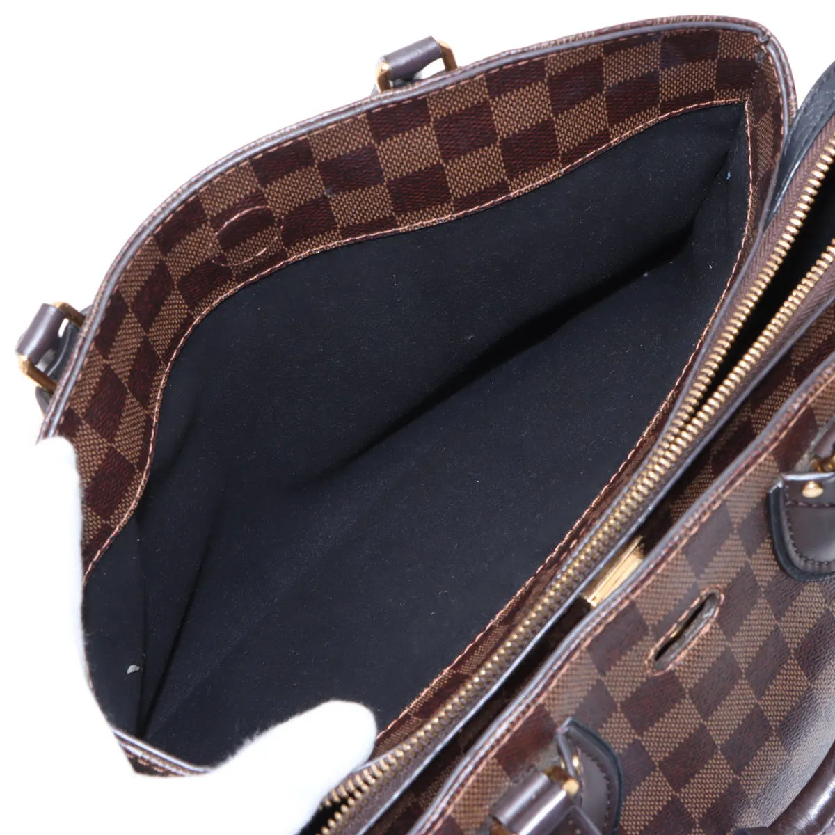 The Louis Vuitton Damier Ebene Normandy in Black is a refined and structured handbag that blends timeless elegance with everyday practicality. Crafted from the iconic Damier Ebene canvas with sleek black leather trim, it features a spacious interior with a convenient slip pocket for easy organization. The bag is secured with a sophisticated twist-lock closure in gold-tone hardware, complemented by protective metal feet at the base for added durability.
