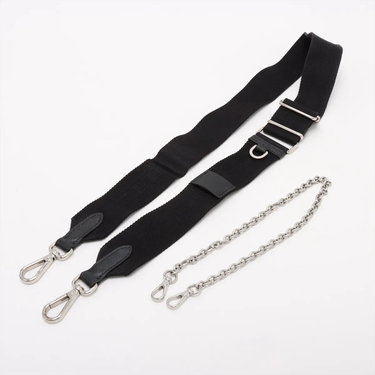 The Prada Tessuto Nylon Leather Two-Way Shoulder Bag in black is a sleek and versatile accessory that blends modern design with everyday functionality. Crafted from durable Tessuto nylon with leather accents, the bag features a spacious interior ideal for carrying daily essentials and comes complete with a detachable coin pouch for added convenience. Finished with silver-tone hardware, it offers multiple carry options with a short chain strap and a long adjustable nylon strap for shoulder or crossbody wear.
