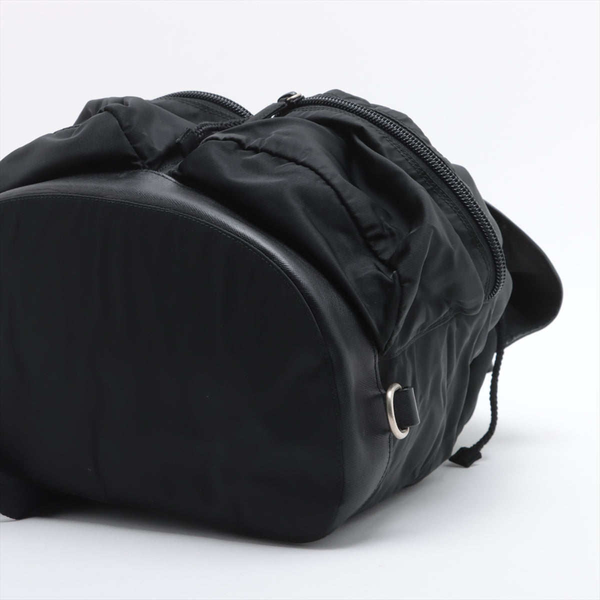 Prada Tessuto Saffiano Nylon Leather Drawstring Backpack Black