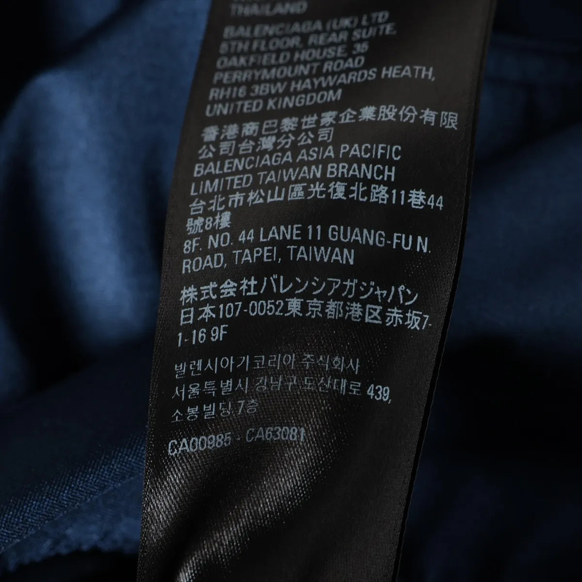 The Balenciaga Yellow Floral Rayon Long Sleeve Maxi Dress in navy blue is a striking piece that blends elegance with a bold, modern aesthetic. Crafted from smooth, lightweight rayon, it features a vibrant yellow floral print that beautifully contrasts against the deep navy background. The dress offers a graceful silhouette with its flowing maxi length and refined long sleeves, making it perfect for both day and evening wear.