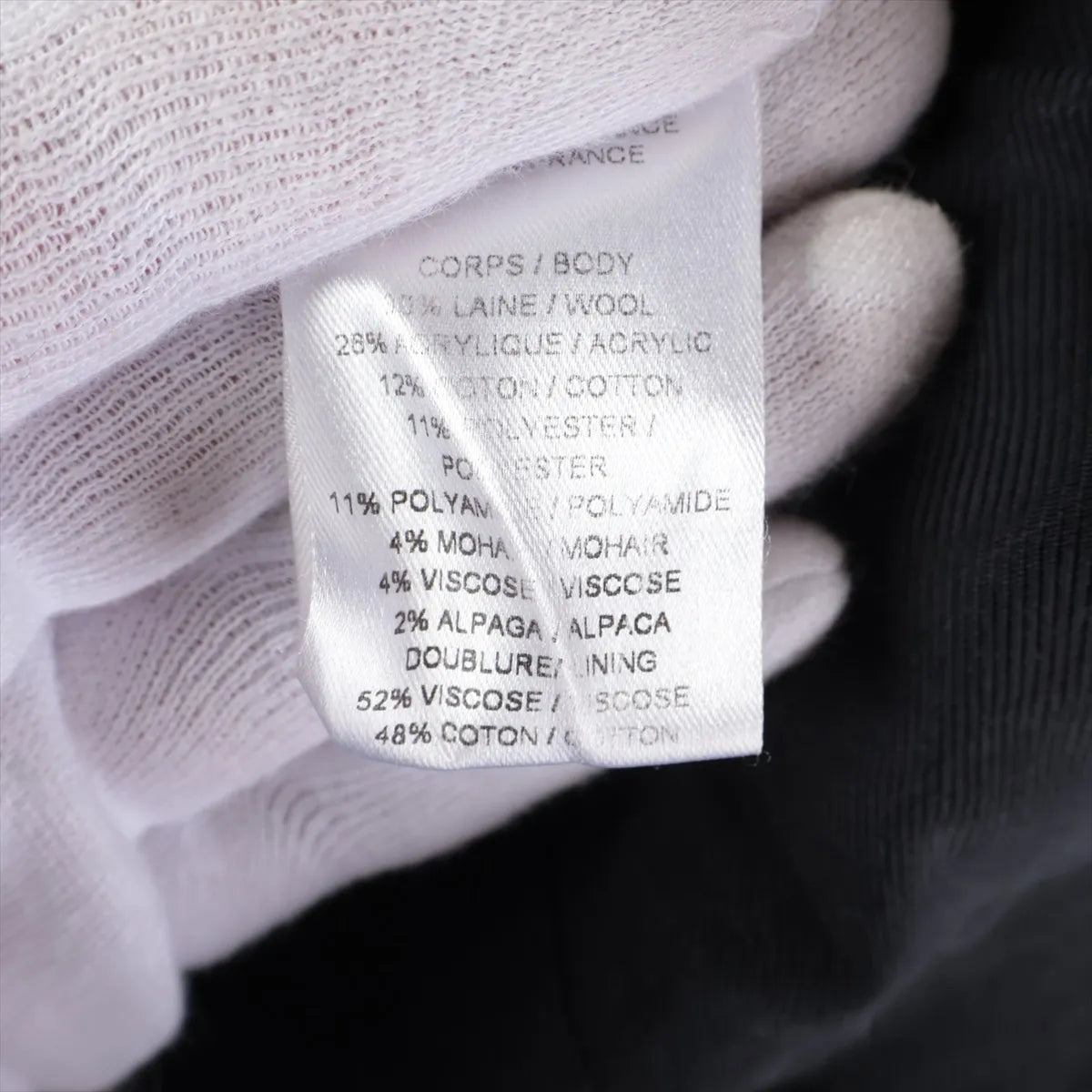 Balmain Tweed Wool Double Breasted Long Coat White x Black