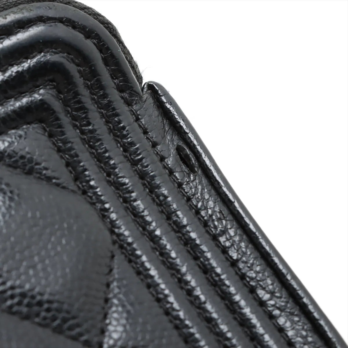 Chanel Boy CC Logo Caviar Skin Chain Zippy Two-Way Wallet Black