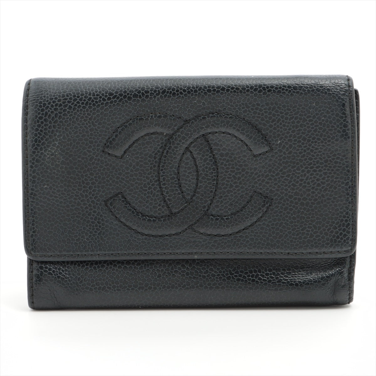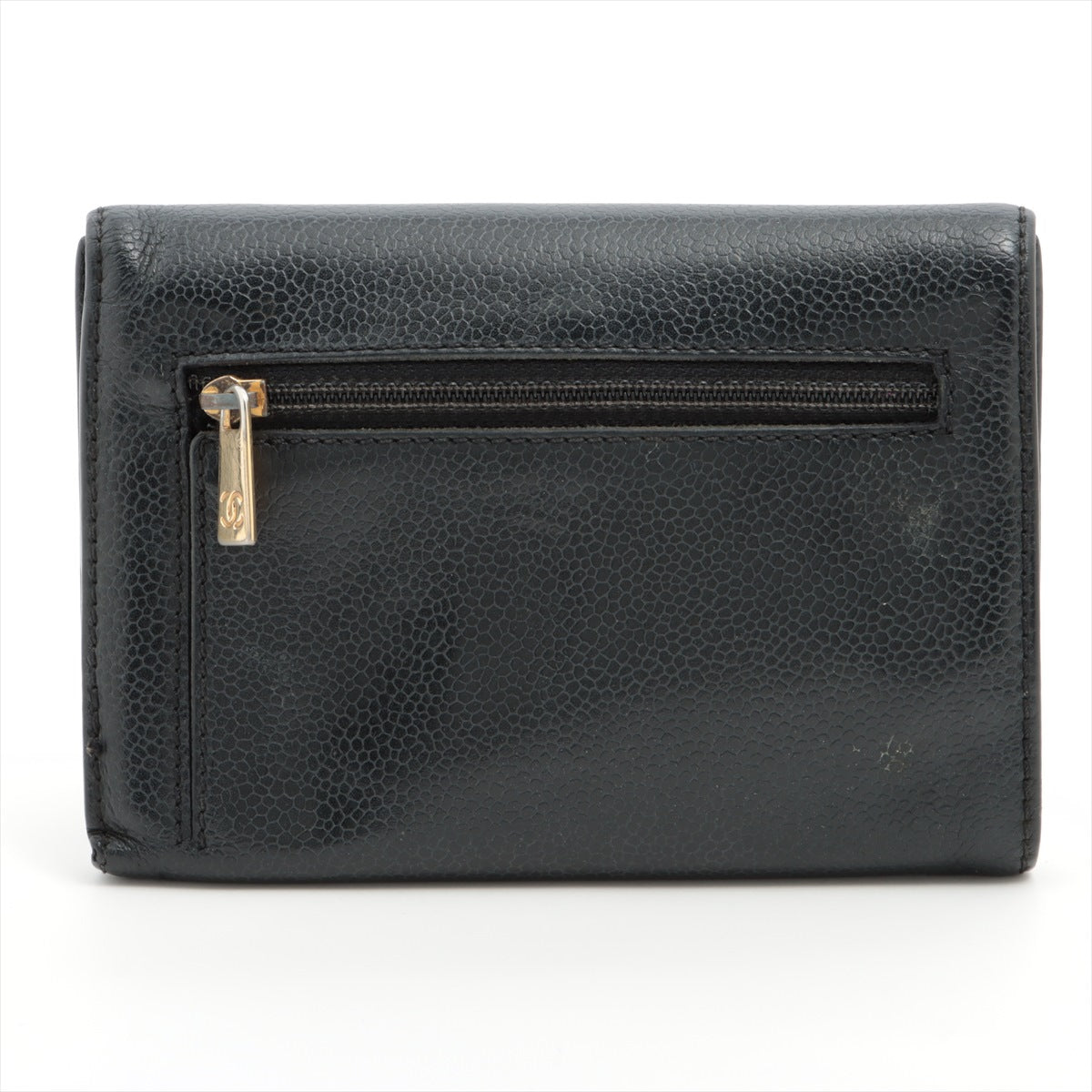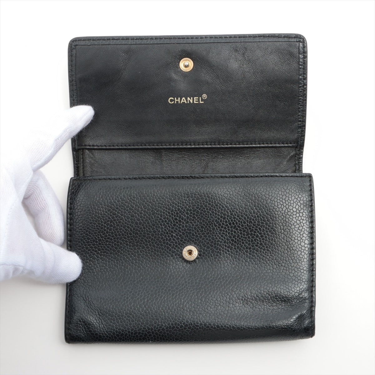 Chanel CC Logo Caviar Skin Trifold Wallet Black