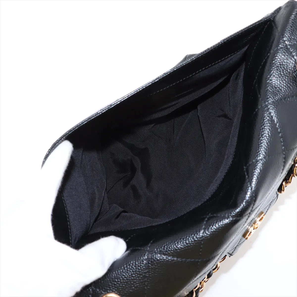 Chanel CC Logo Matelasse Caviar Skin Chain Shoulder Bag Black