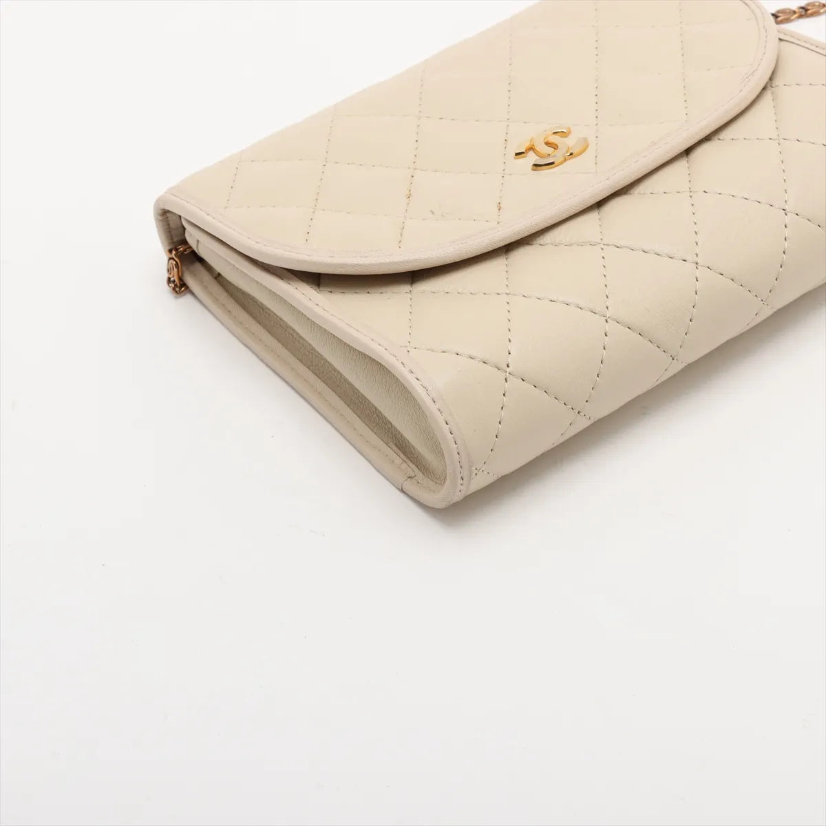 Chanel CC Logo Matelasse Lambskin Chain Shoulder Bag Beige