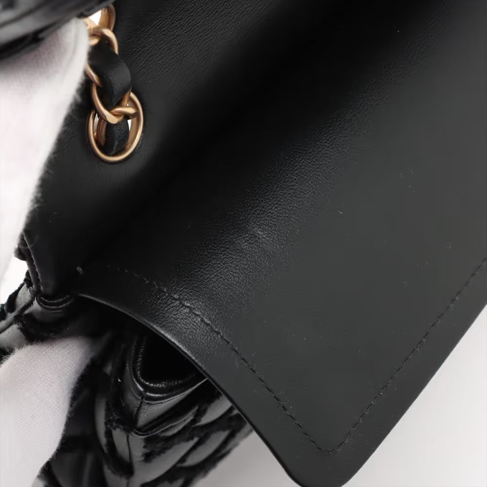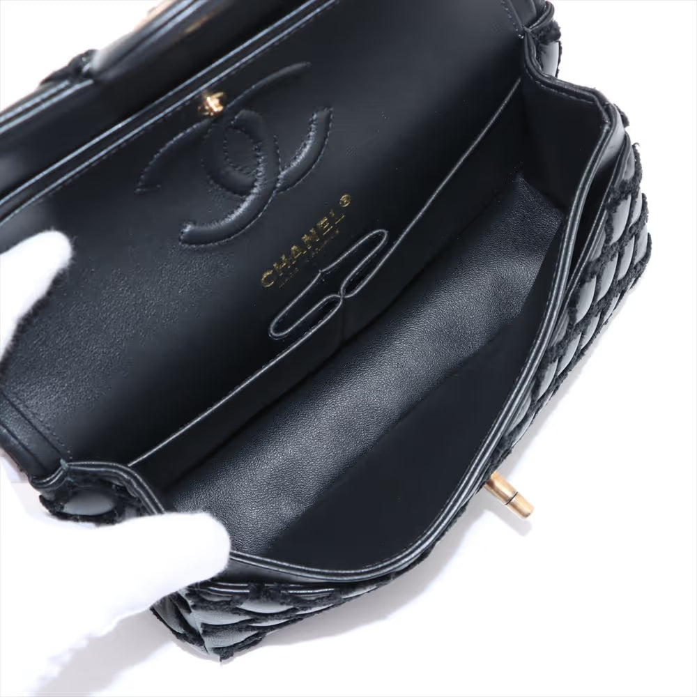 Chanel CC Logo Matelasse Lambskin Fabric Double Flap Double Chain Bag Black