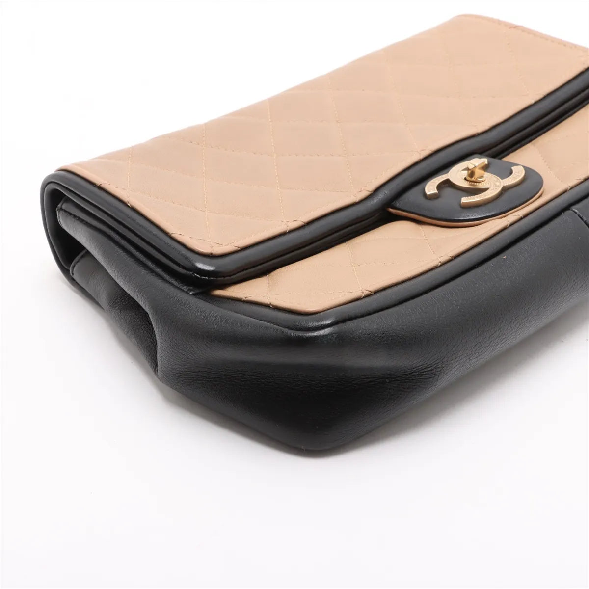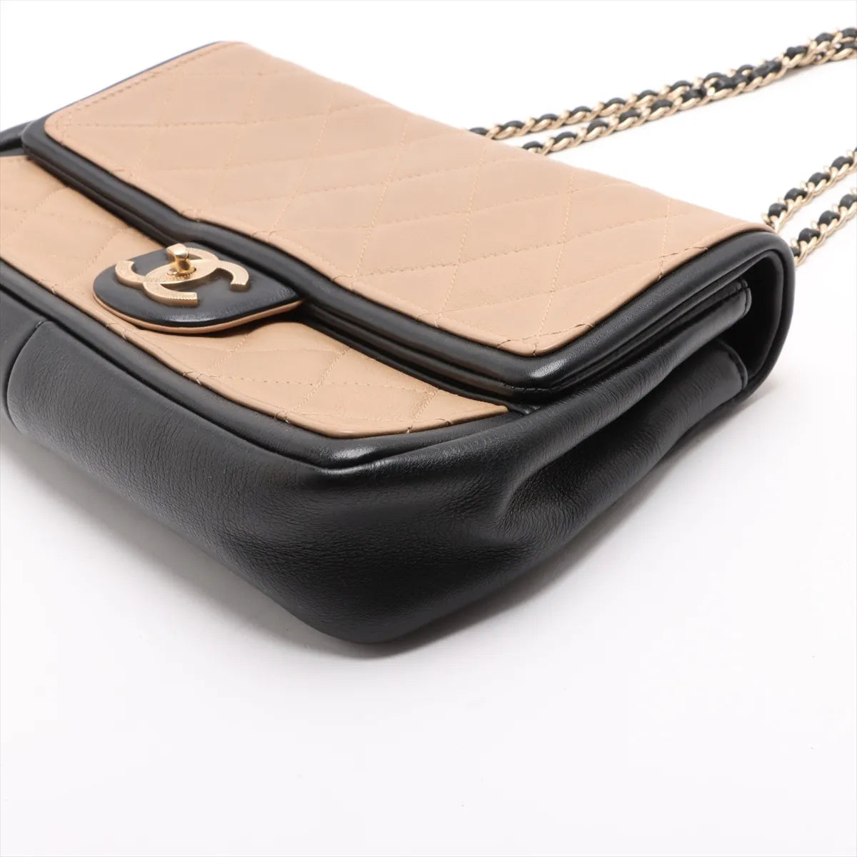 Chanel CC Logo Matelasse Leather Single Flap Double Chain Bag Beige x Black