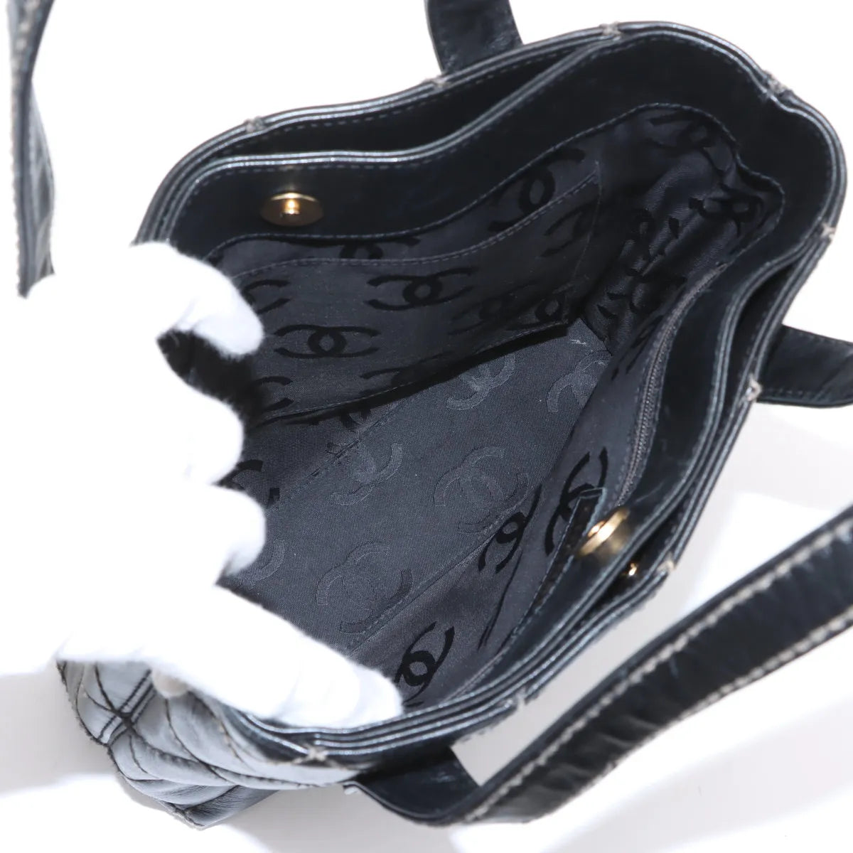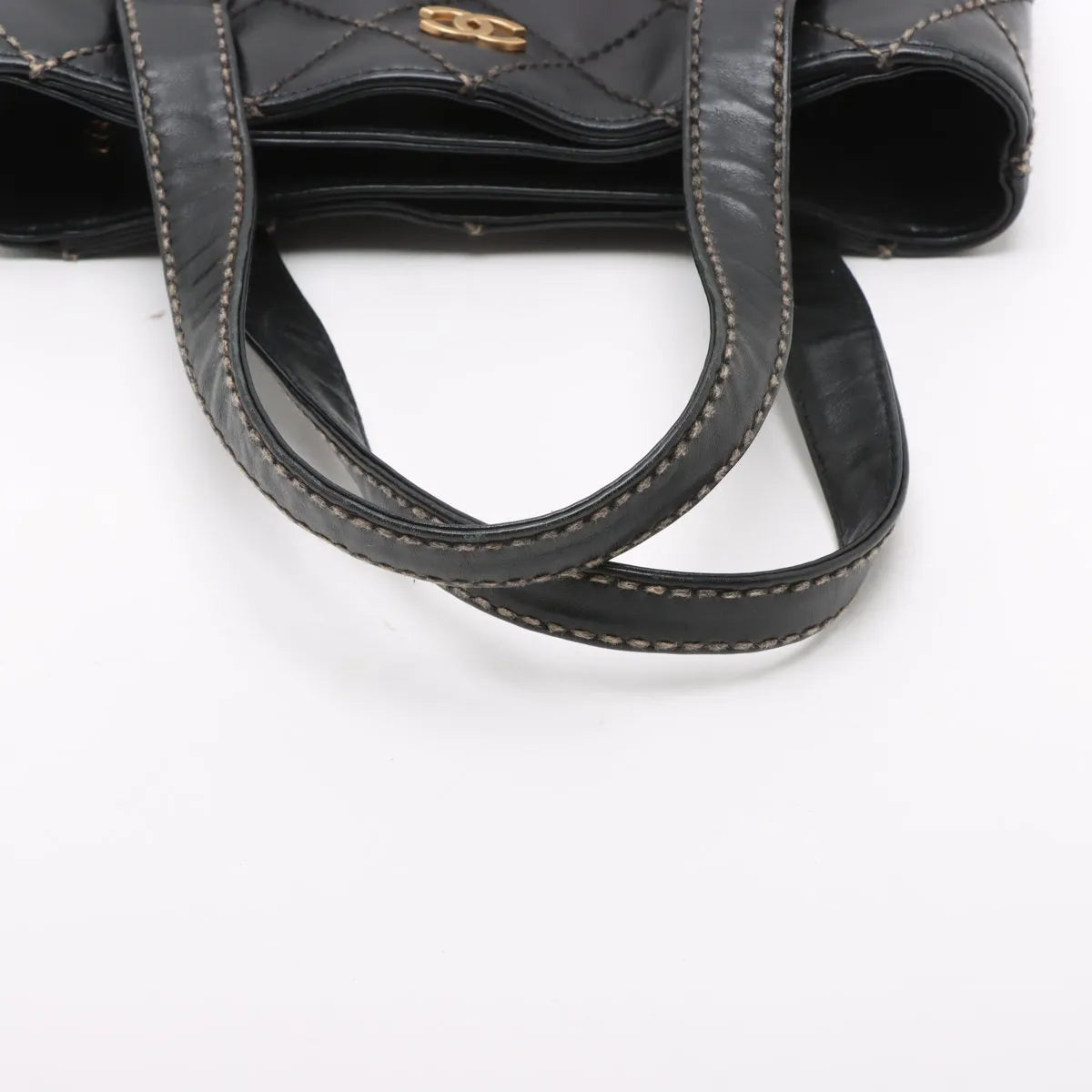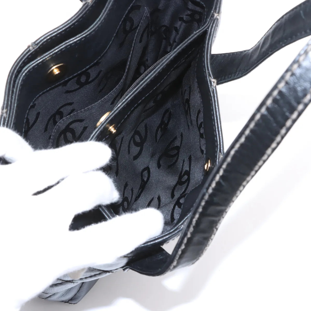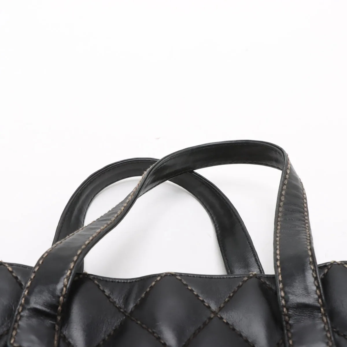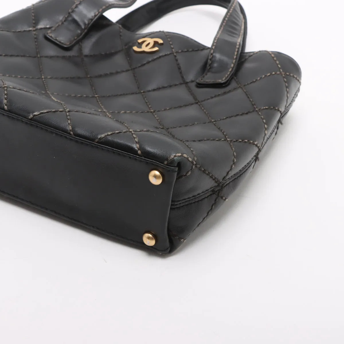 Chanel CC Logo Wild Stitch Lambskin Tote Bag Black