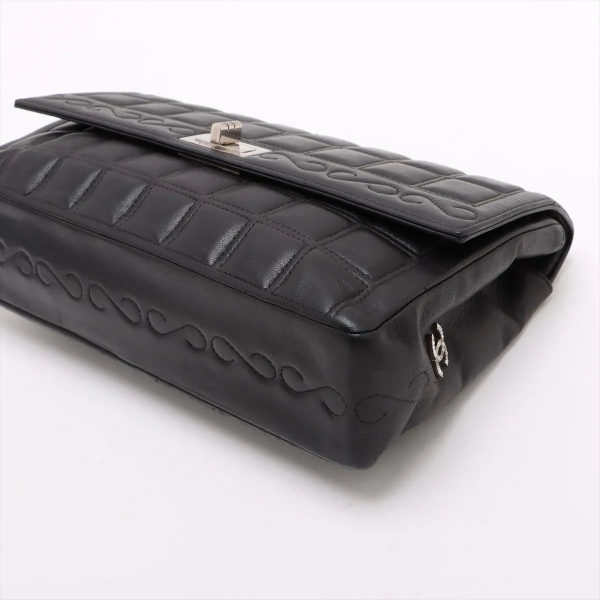 Chanel Chocolate Bar 2.55 Lambskin Single Flap Double Chain Bag Black