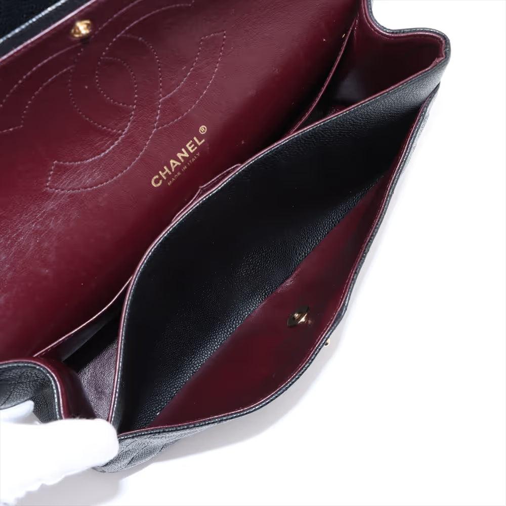 Chanel 30 Caviar Skin Double Flap Double Chain Bag Black