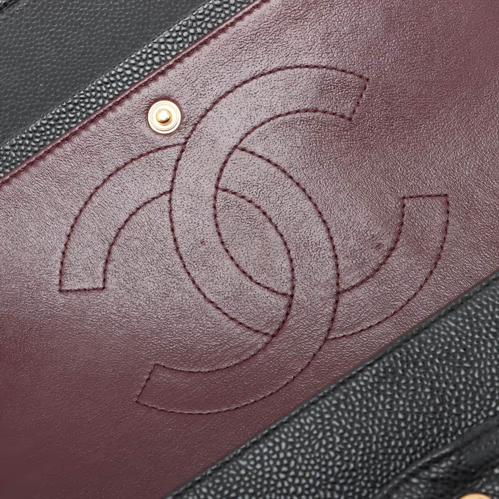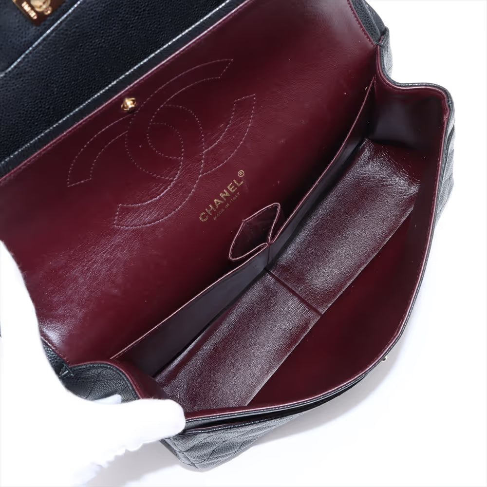 Chanel Demakamatrasse 30 Large Caviar Skin Double Flap Double Chain Bag Black