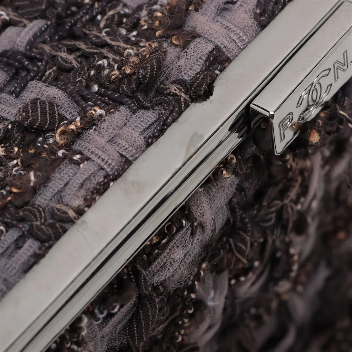 Chanel Paris New York Line Tweed Vanity Chain Handbag Gray X Black