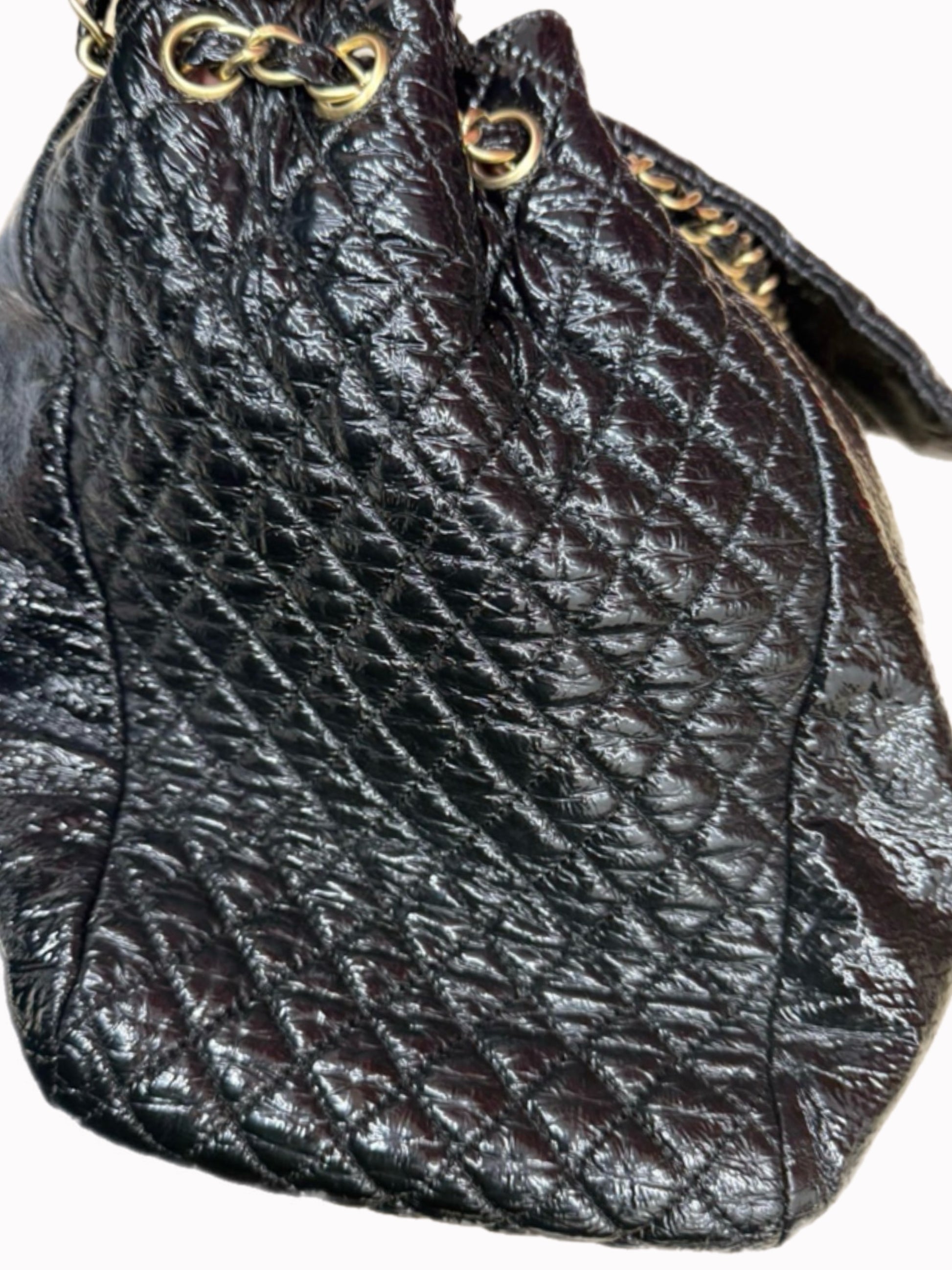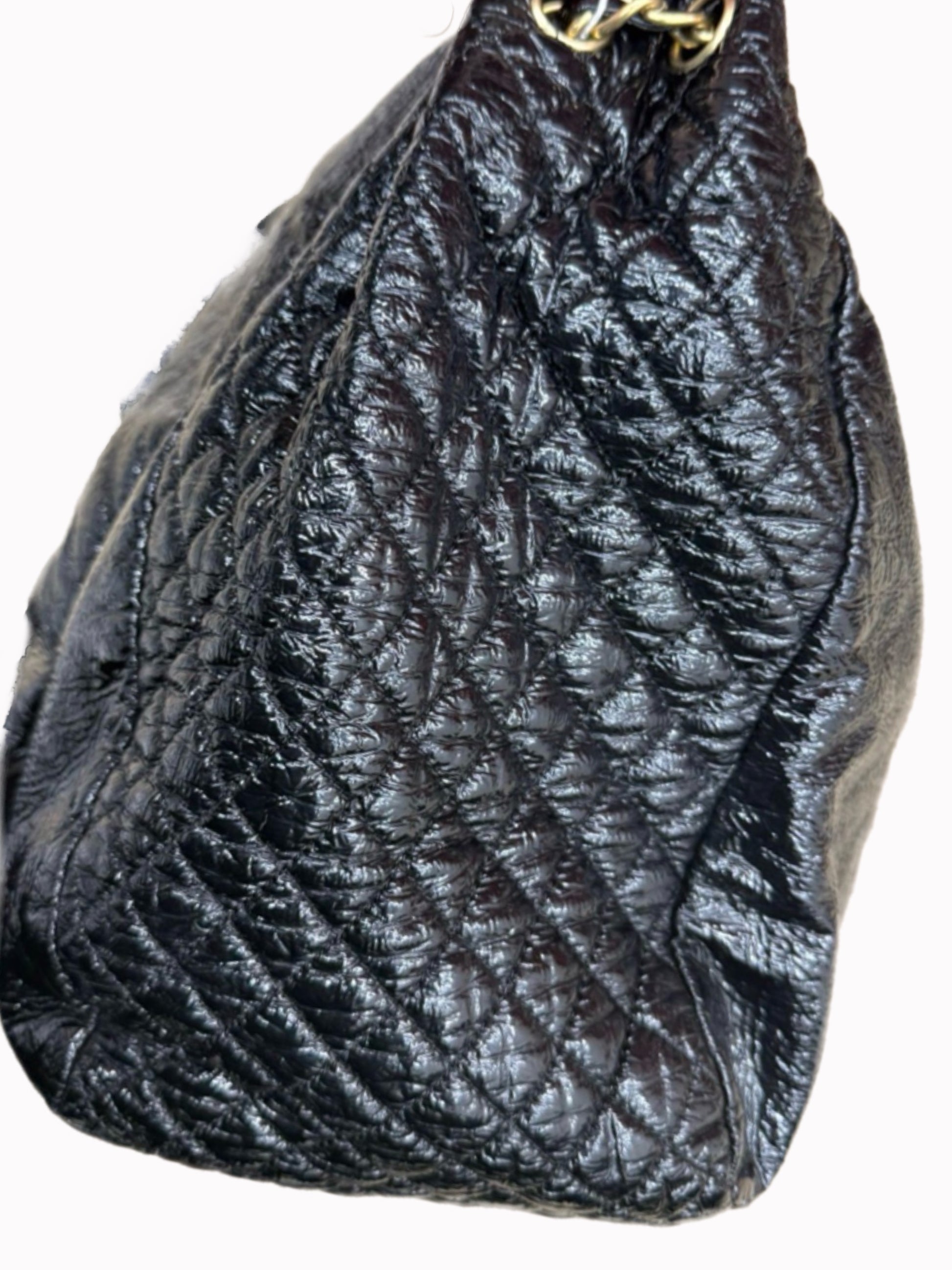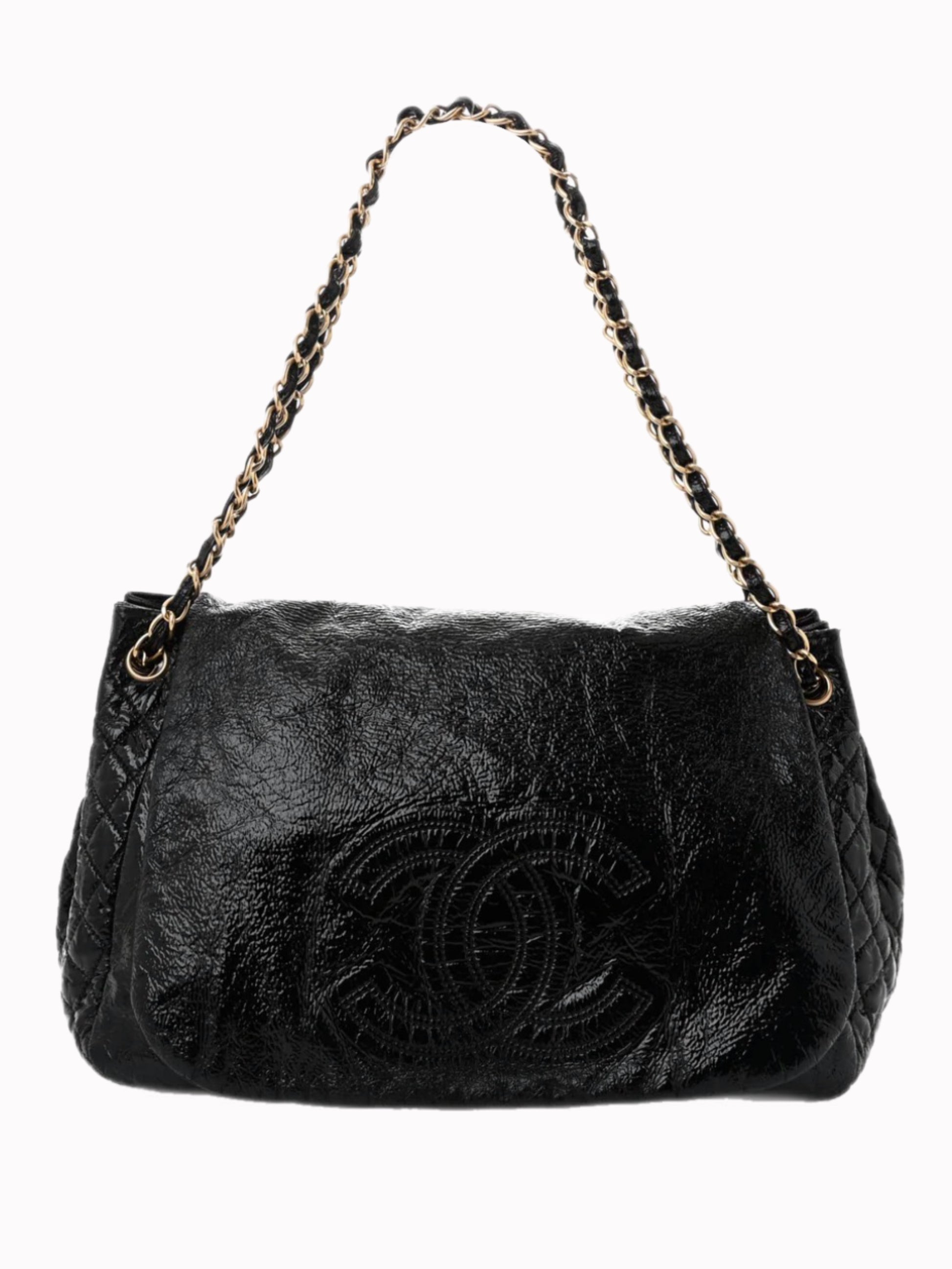 Chanel Vinyl XL Rock and Chain Flap Hobo Bag — Black