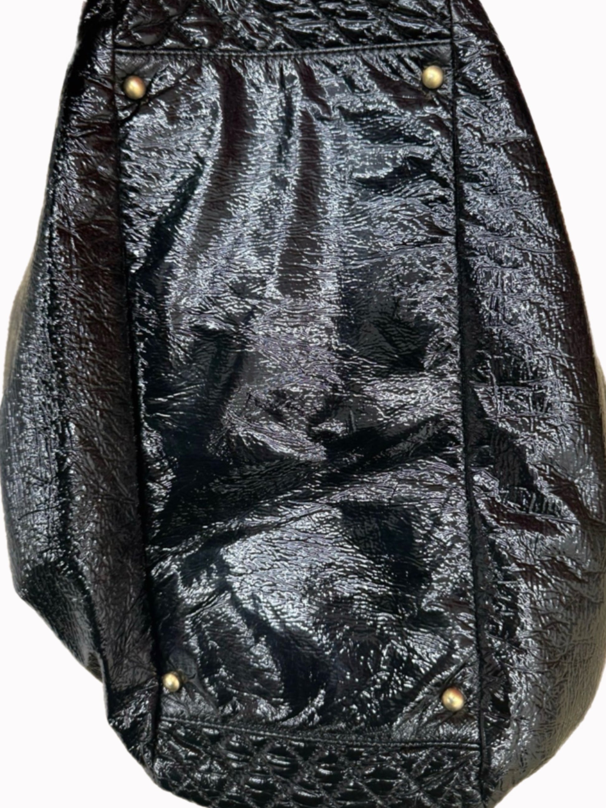 - Shiny black patent leather exterior