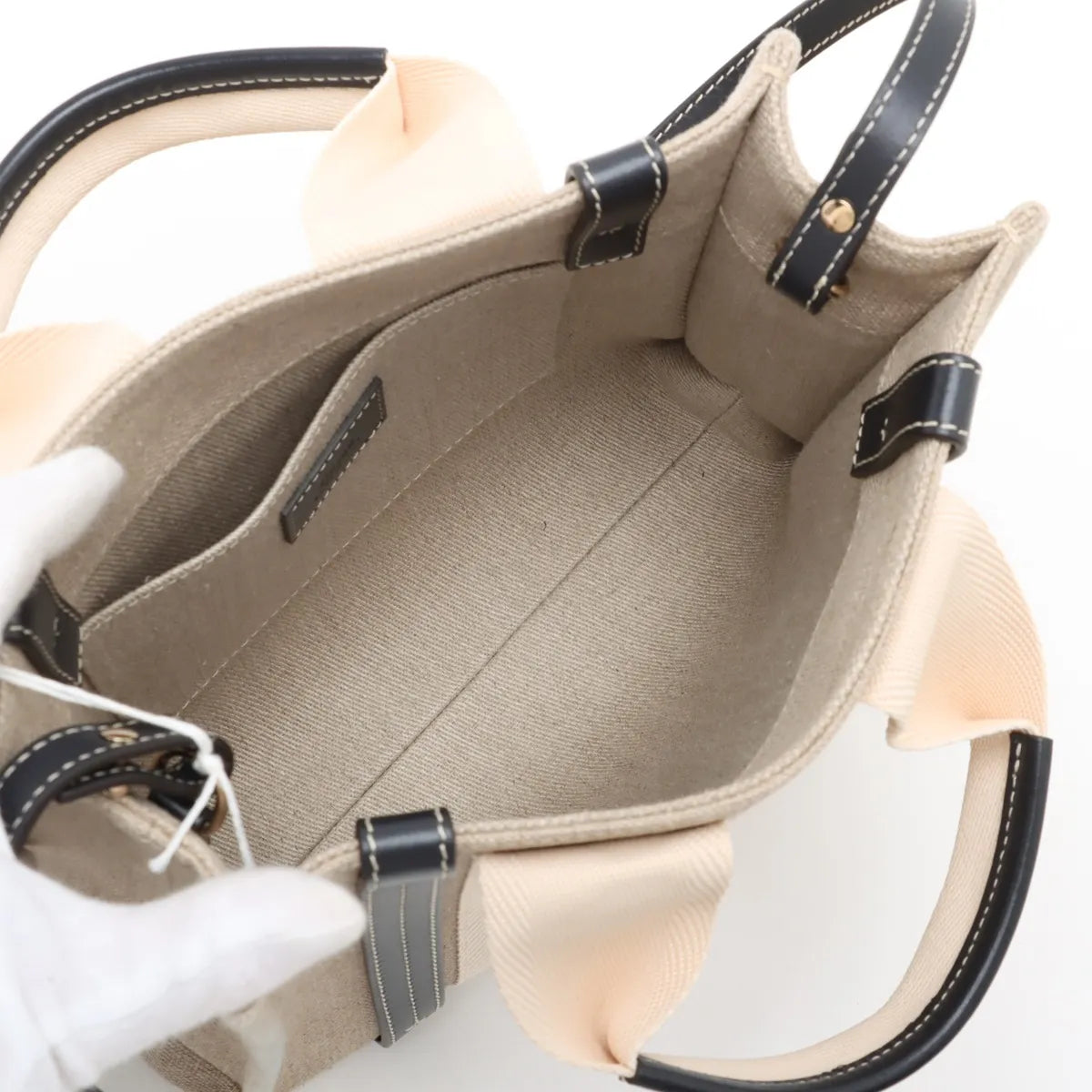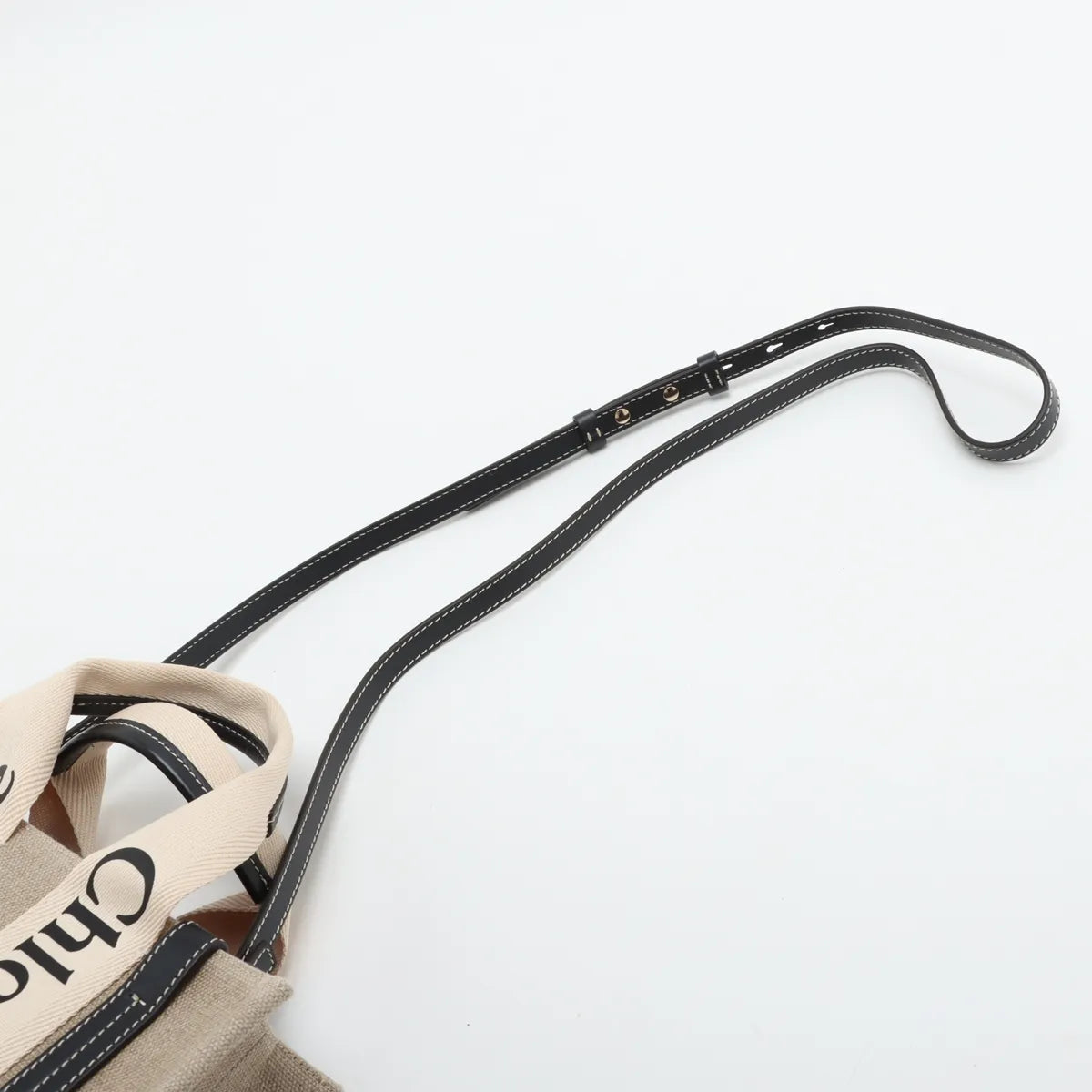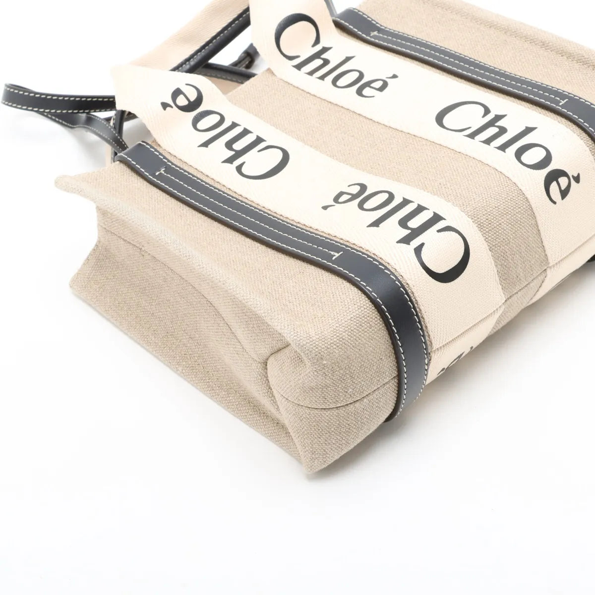Chloe Woody Small Canvas Leather Two-Way Handbag Beige x Black
