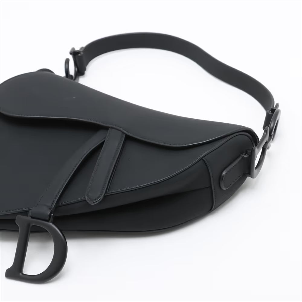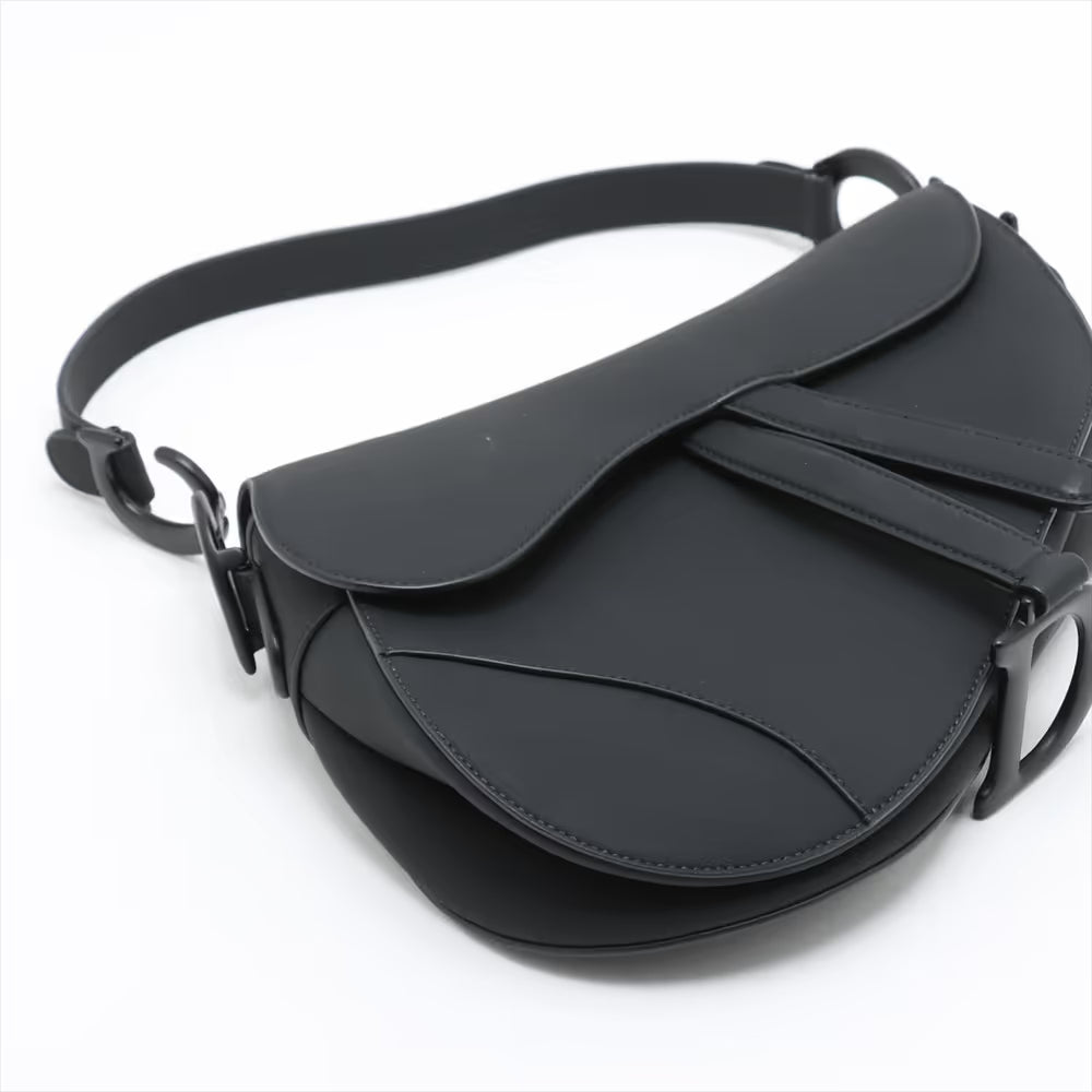 Christian Dior Saddle Leather Two-Way Shoulder Bag Black