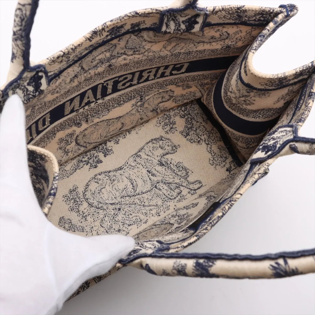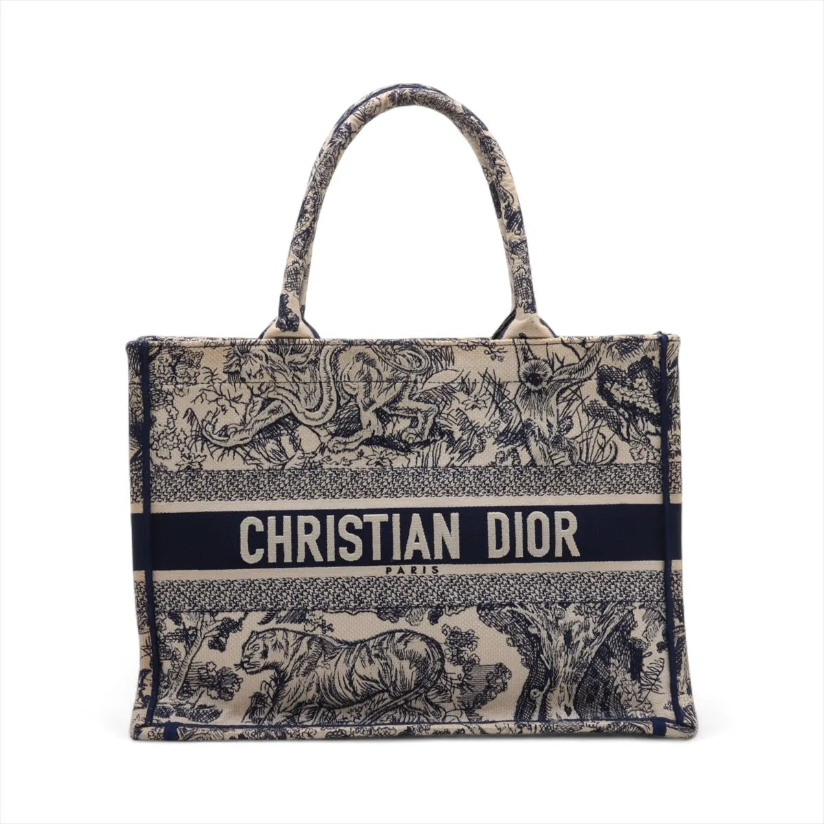 Christian Dior Toile De Jouy Embroidery Medium Canvas Book Tote Bag White x Blue