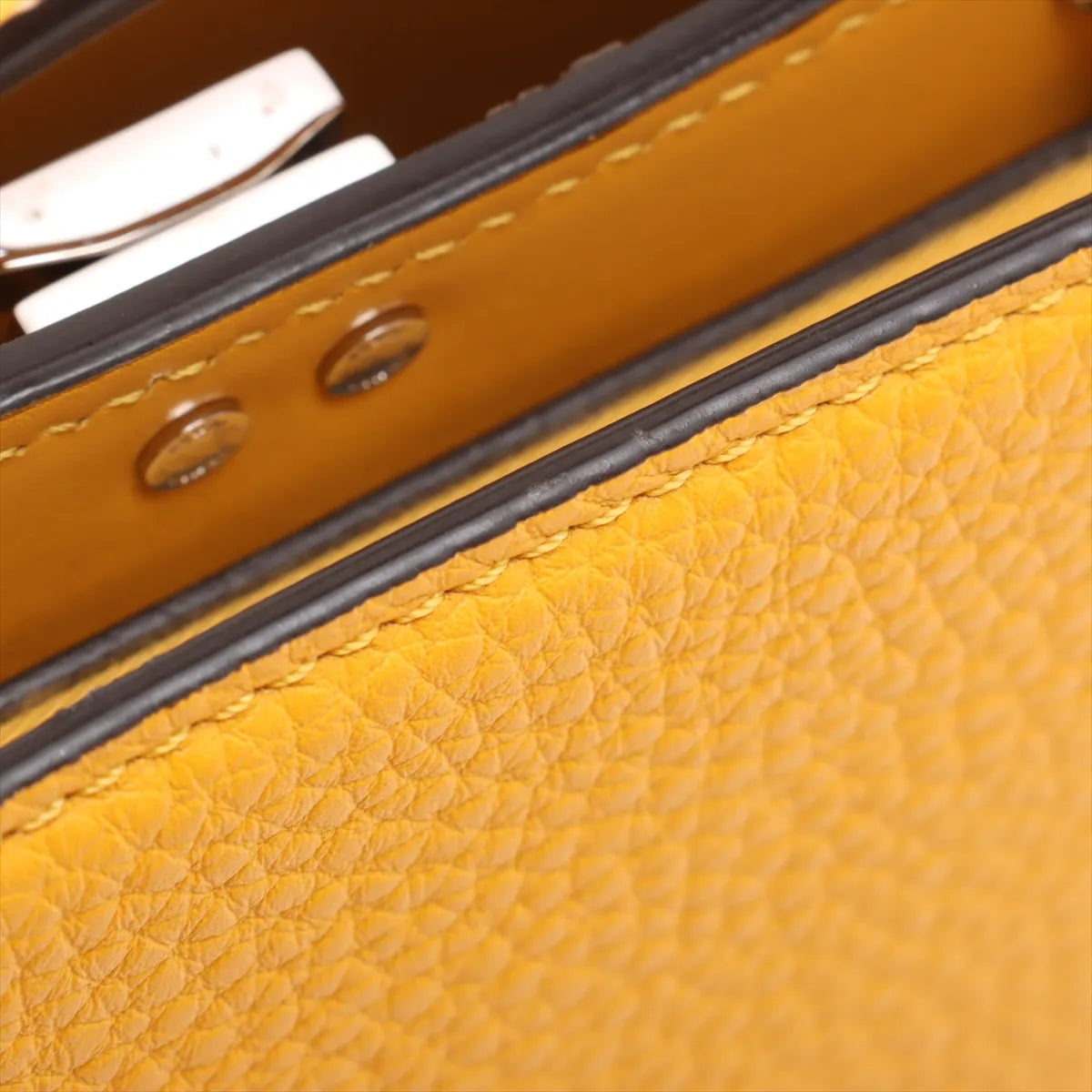 The Fendi Peekaboo ISeeU Leather Two-Way Handbag in yellow is a vibrant and iconic statement piece that showcases Fendi’s signature craftsmanship in a modern silhouette. Crafted from smooth leather, the bag features a spacious interior designed to keep daily essentials neatly organized. Finished with sleek silver-tone hardware, it offers versatile carry options with a refined top handle and a detachable long strap.