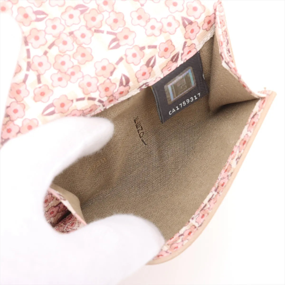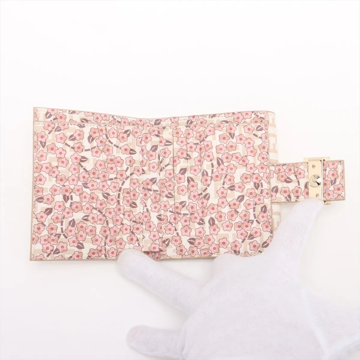 Fendi Zucchino Leather Trifold Compact Wallet Ivory