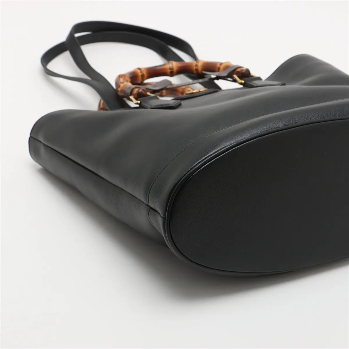 The Gucci Bamboo Diana Leather Tote Bag Black is a timeless blend of elegance and versatility. Expertly crafted from smooth black leather, the sophisticated tote features the brand’s iconic short double bamboo handles, a signature detail that highlights Gucci’s rich heritage of craftsmanship. It also includes a long leather tote handle for added carrying convenience and style. Designed with a spacious interior, the bag effortlessly accommodates daily essentials while maintaining a refined silhouette.