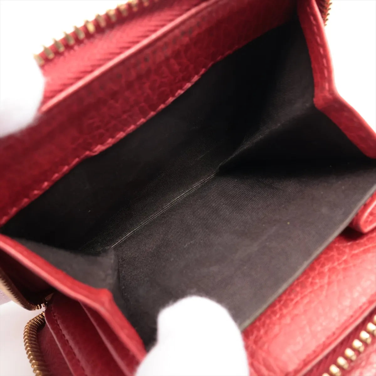 Gucci GG Canvas Leather Compact Wallet Beige x Red