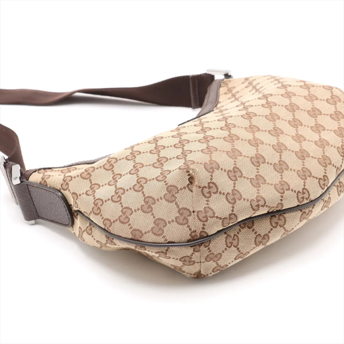 The Gucci GG Canvas Leather Shoulder Bag in beige is a classic and versatile hobo-style bag that combines timeless design with practical functionality. Crafted from signature GG canvas with leather accents, it features a spacious interior with a zip pocket for organized storage of daily essentials.