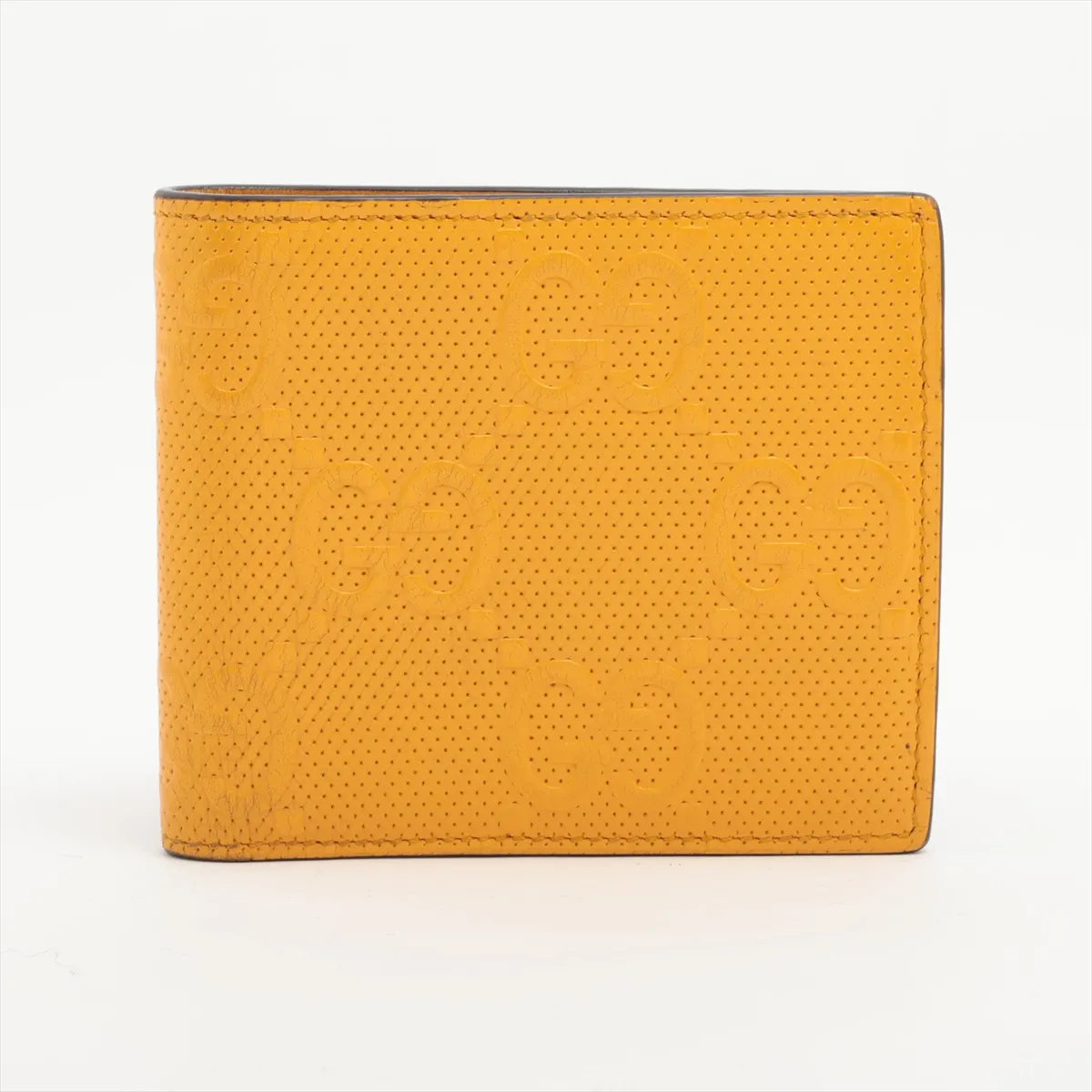 Gucci GG Logo Embossed Leather Compact Wallet Yellow