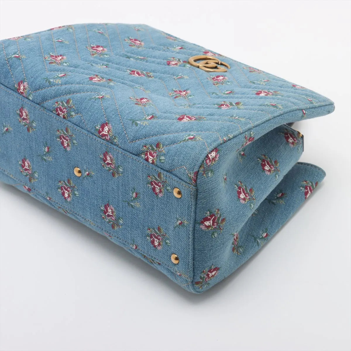 Gucci GG Marmont Chevron Floral Denim x Leather Two-Way Shoulder Bag
