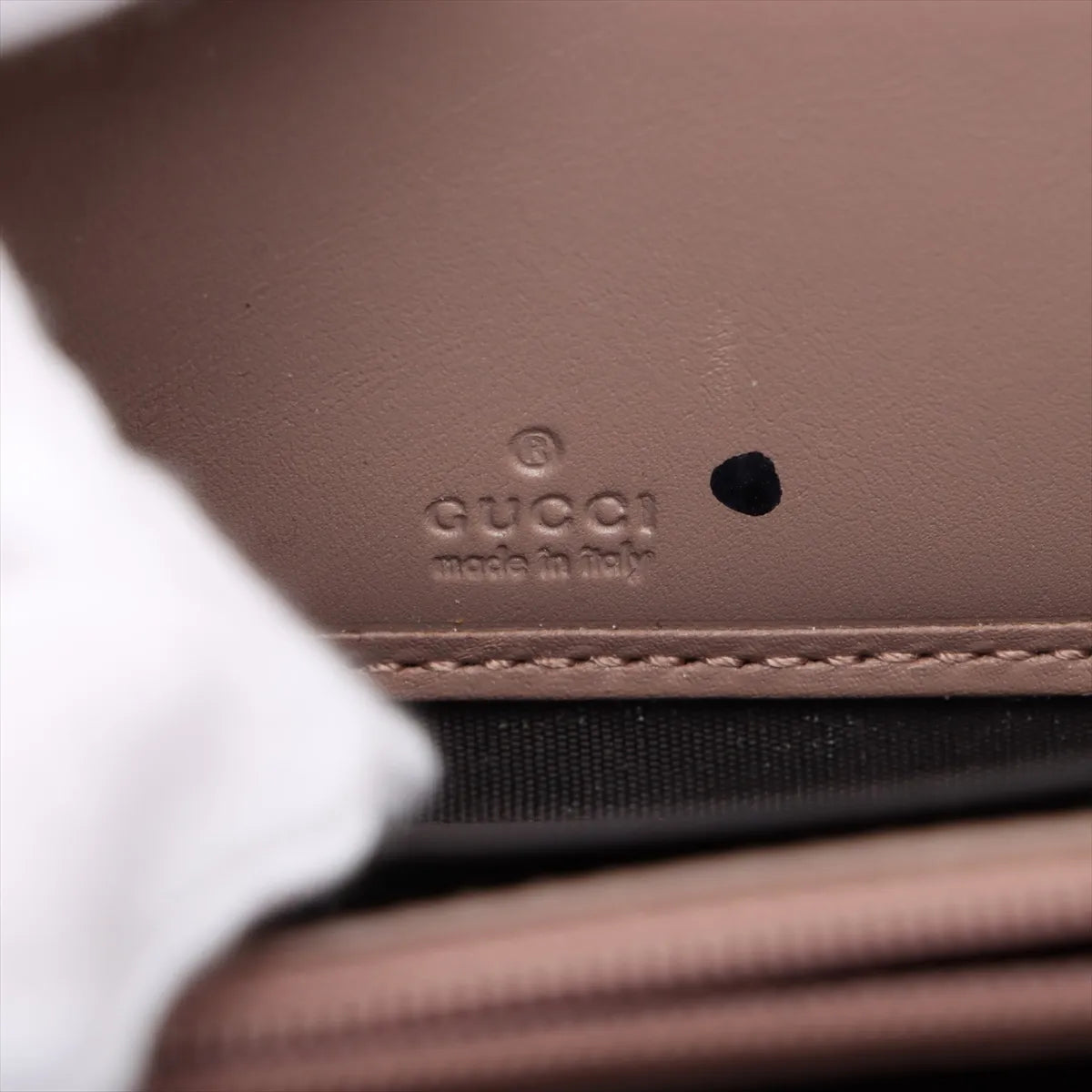 Gucci GG Marmont Chevron Leather Zippy Long Wallet Pink Beige