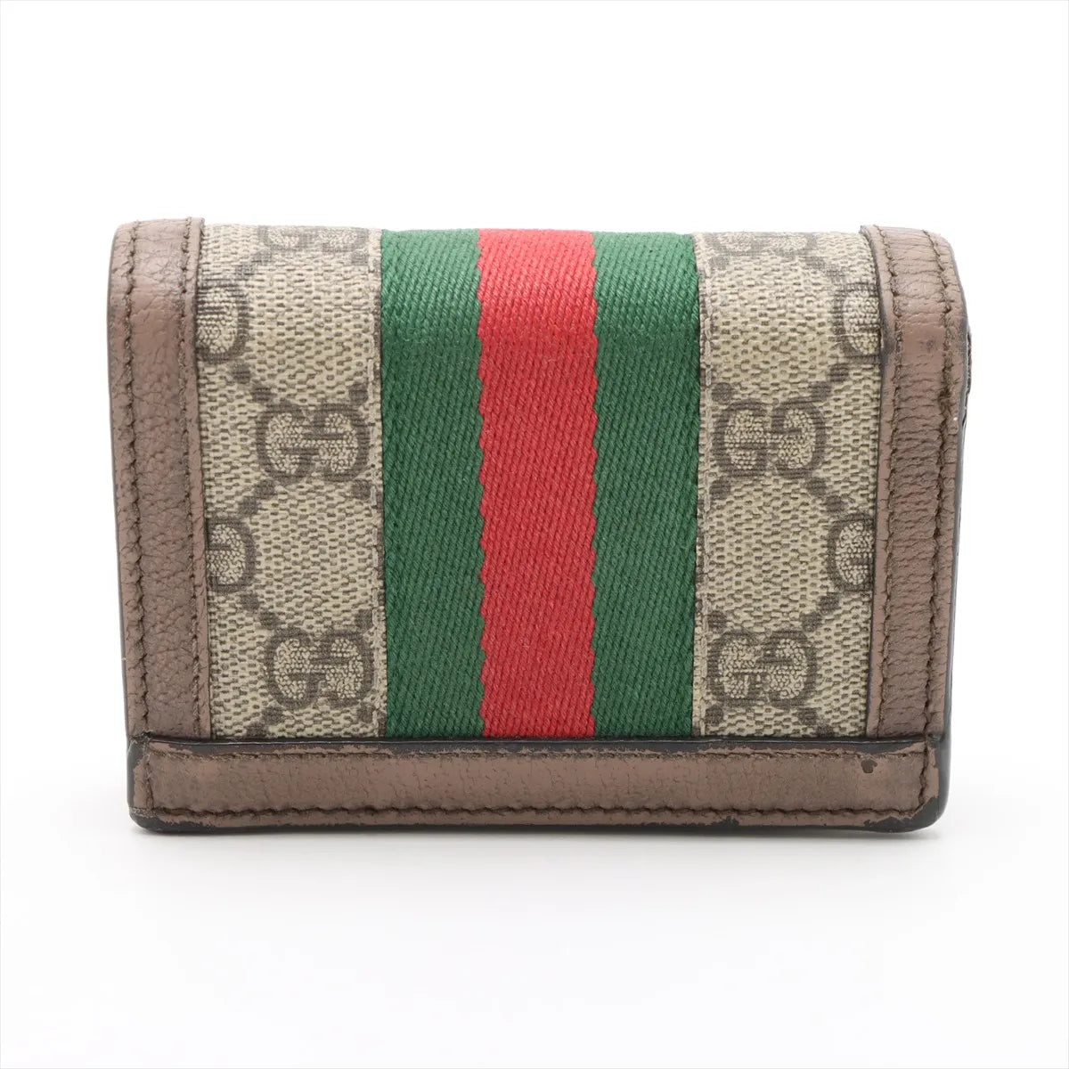 Gucci Ophidia Leather Compact Wallet Beige×Brown