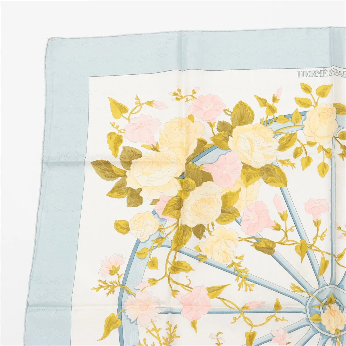 This Hermès Carré 90 “Romantique” silk scarf is a soft, elegant expression of timeless femininity, featuring delicate florals intertwined with a graceful wheel motif. Crafted in France from 100% silk, its pastel palette of blush, ivory, and powder blue creates a light, airy feel that’s effortlessly chic. Measuring approximately 90cm x 90cm, this classic carré can be styled around the neck, in the hair, or tied to a handbag for a refined finishing touch. A beautifully romantic piece that embodies Hermès artistry and understated luxury.