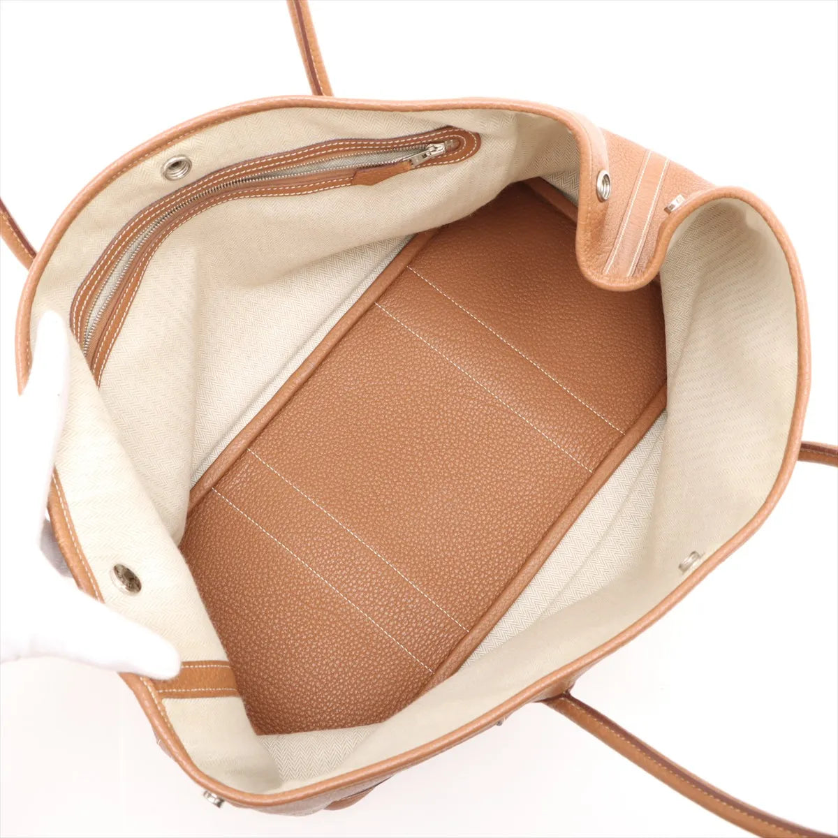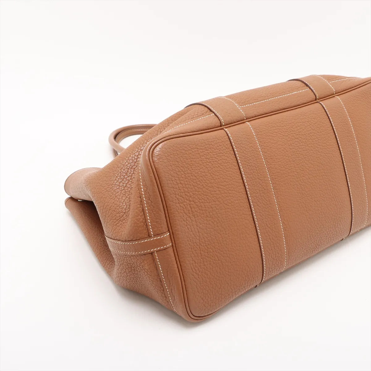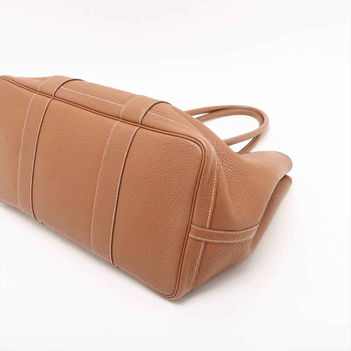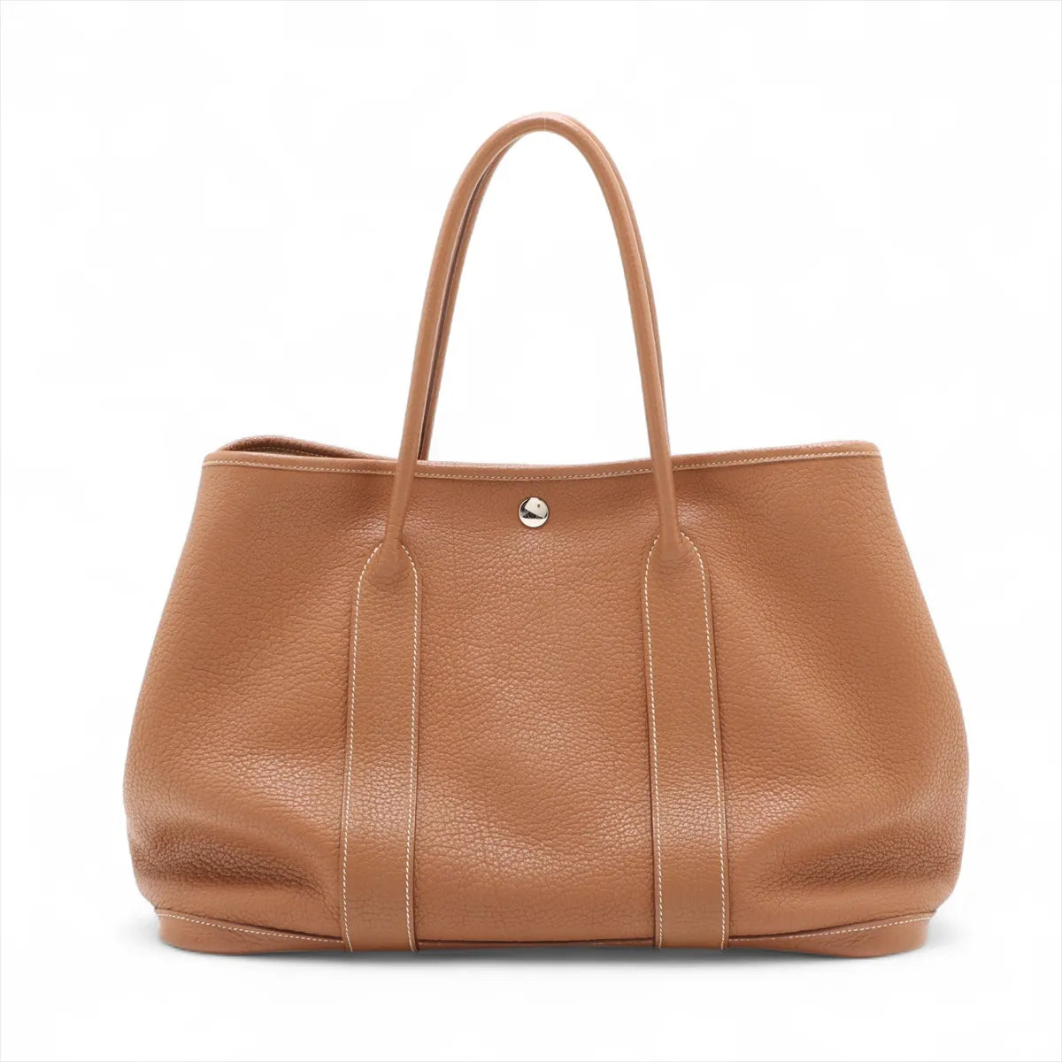 The Hermès Garden Party 36 PM in Negonda Gold is a timeless tote that exemplifies effortless elegance and refined craftsmanship. Made from supple, durable Negonda leather, it features a spacious interior ideal for daily essentials and more. Side snaps allow the bag to expand for added capacity, offering both versatility and style. The central snap lock closure keeps belongings secure while maintaining its clean, classic silhouette.