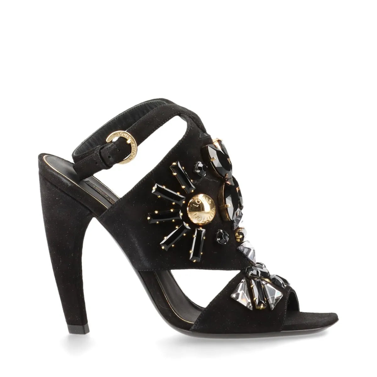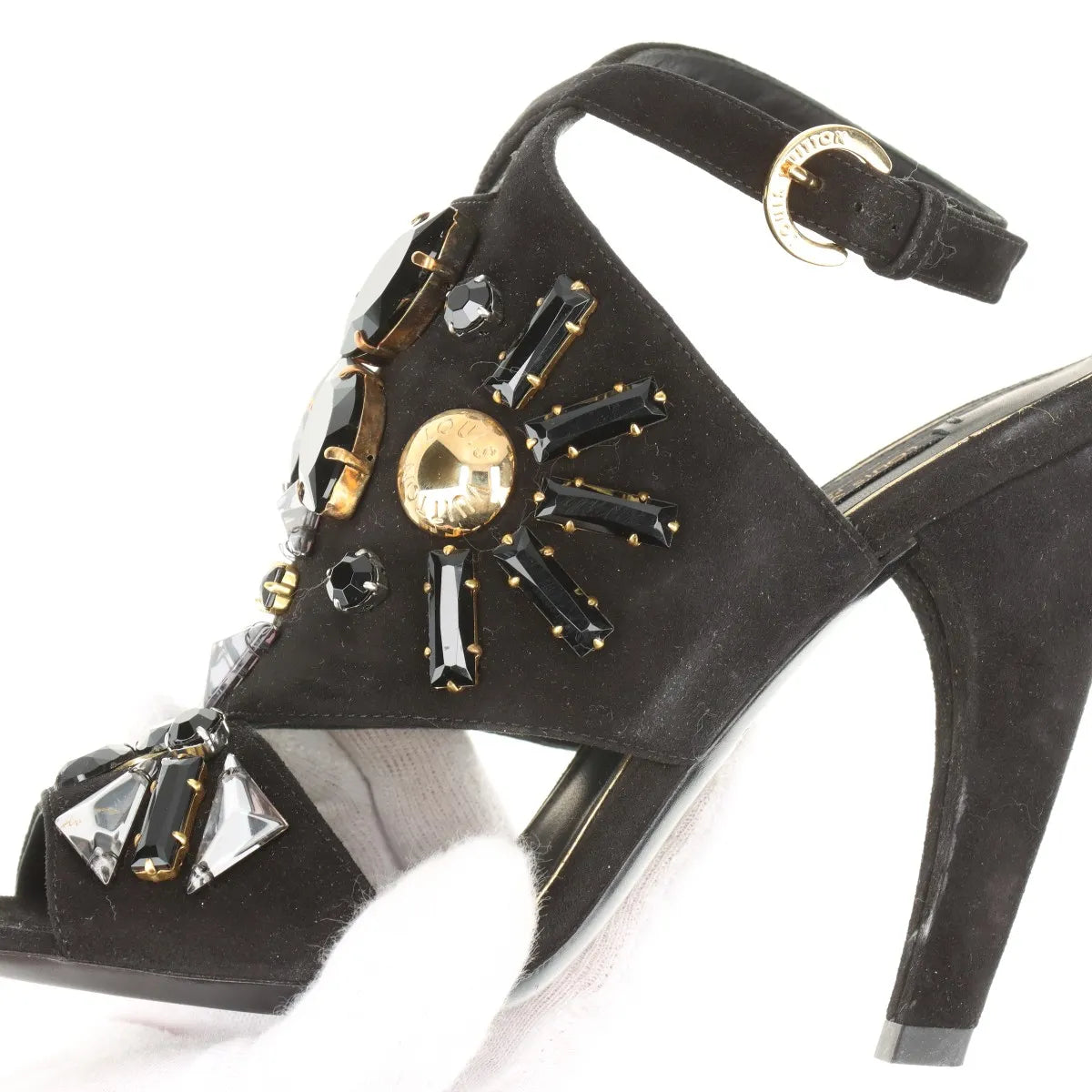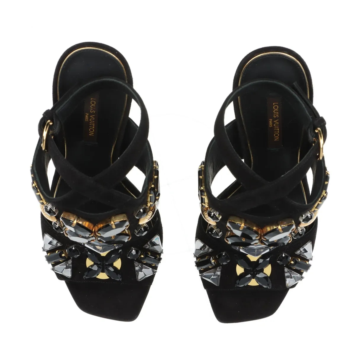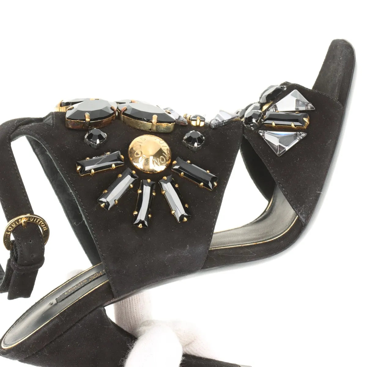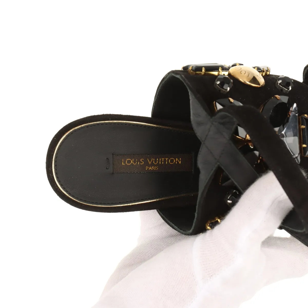 Louis Vuitton Cut Out Crsytal Suede Sandal Black