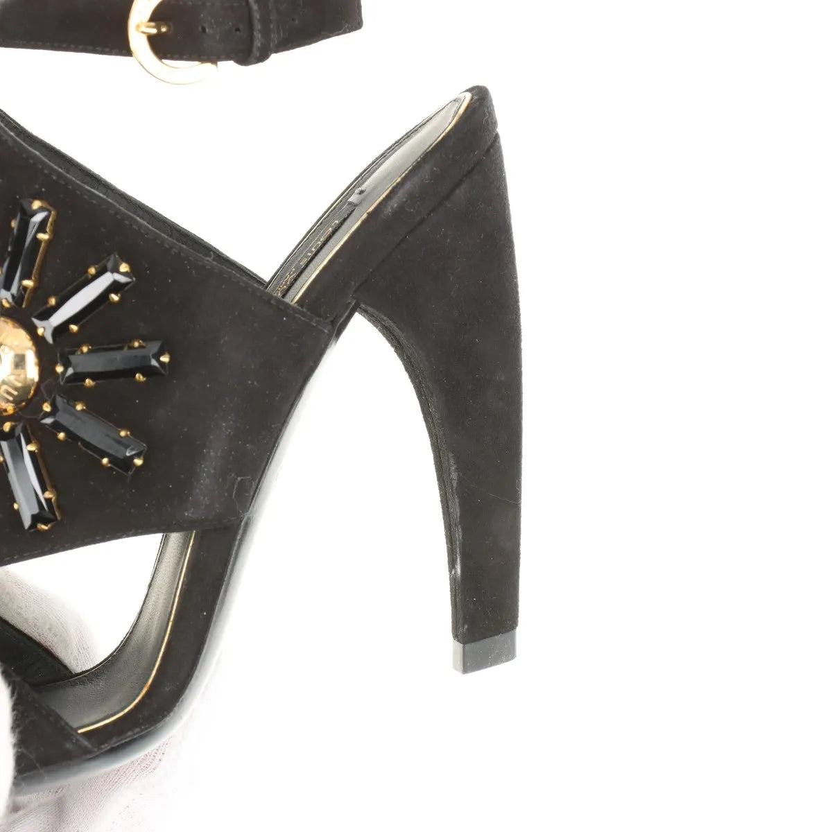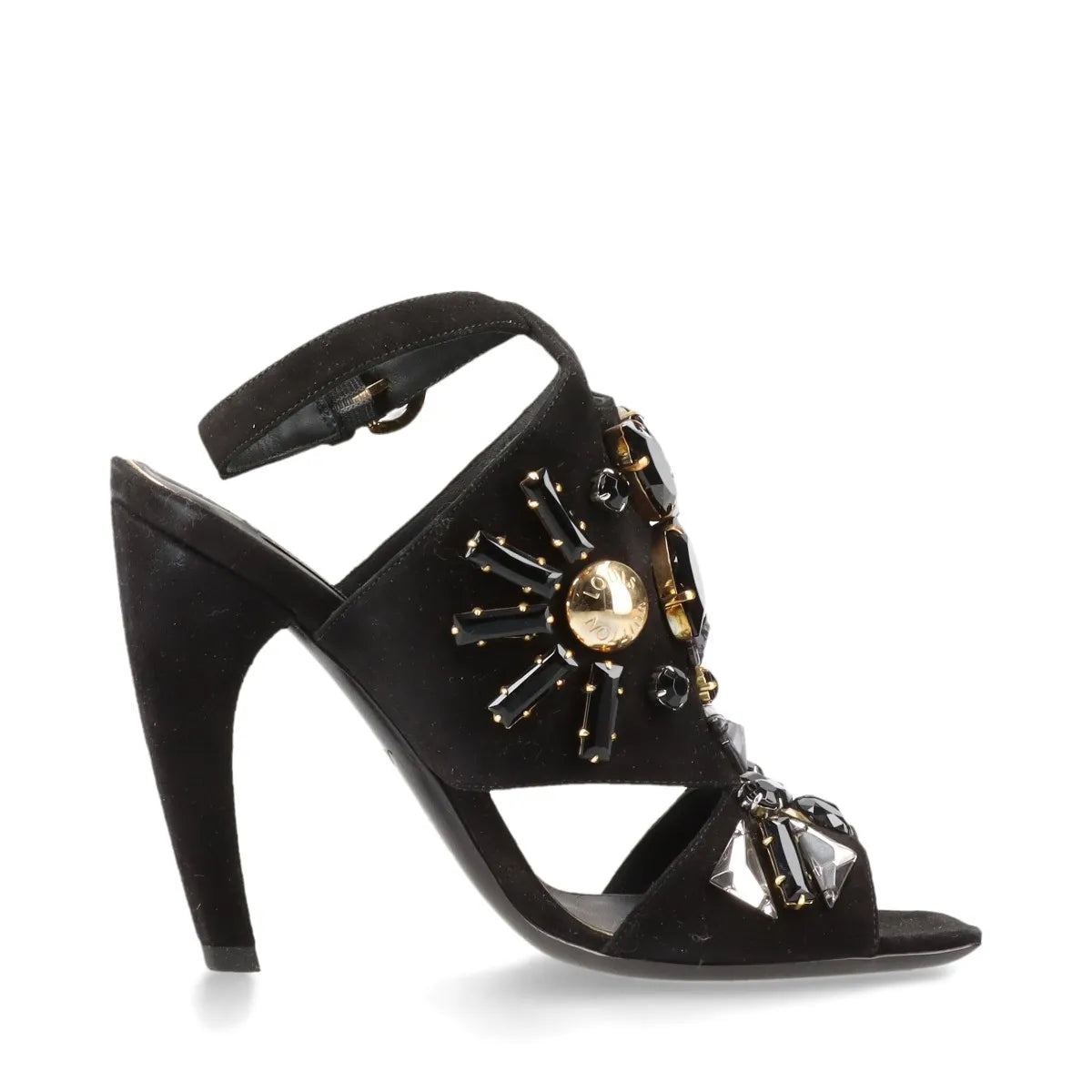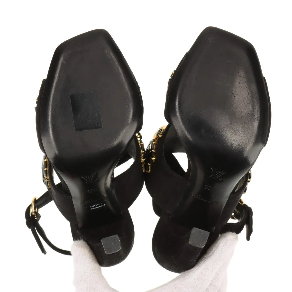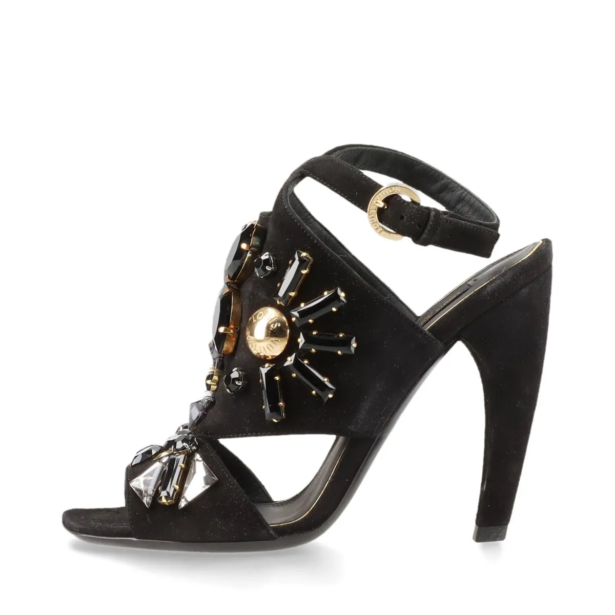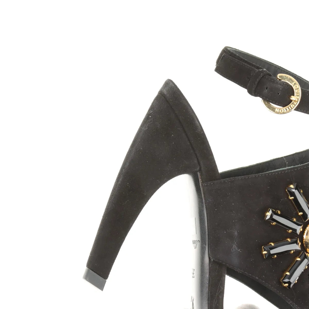 Louis Vuitton Cut Out Crsytal Suede Sandal Black