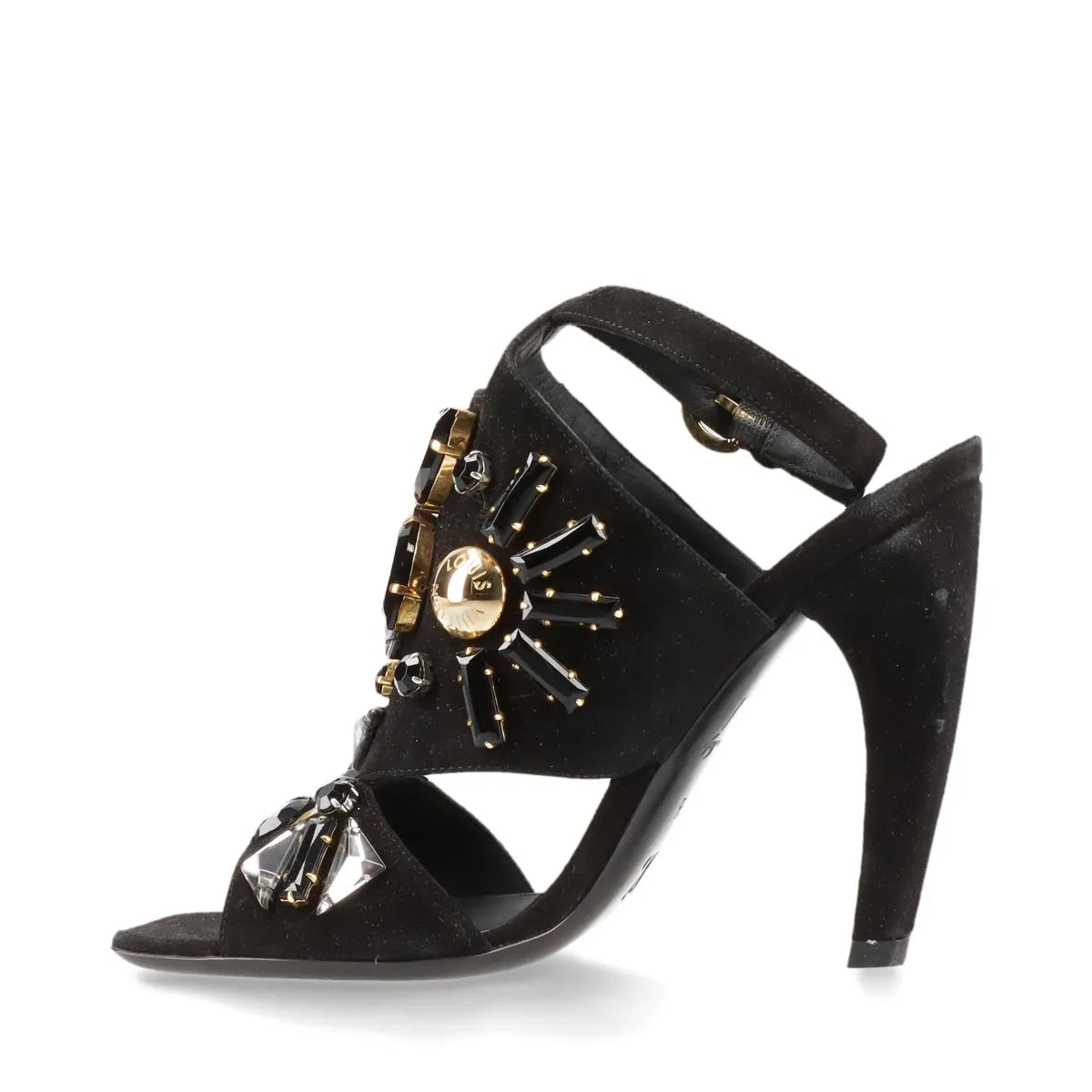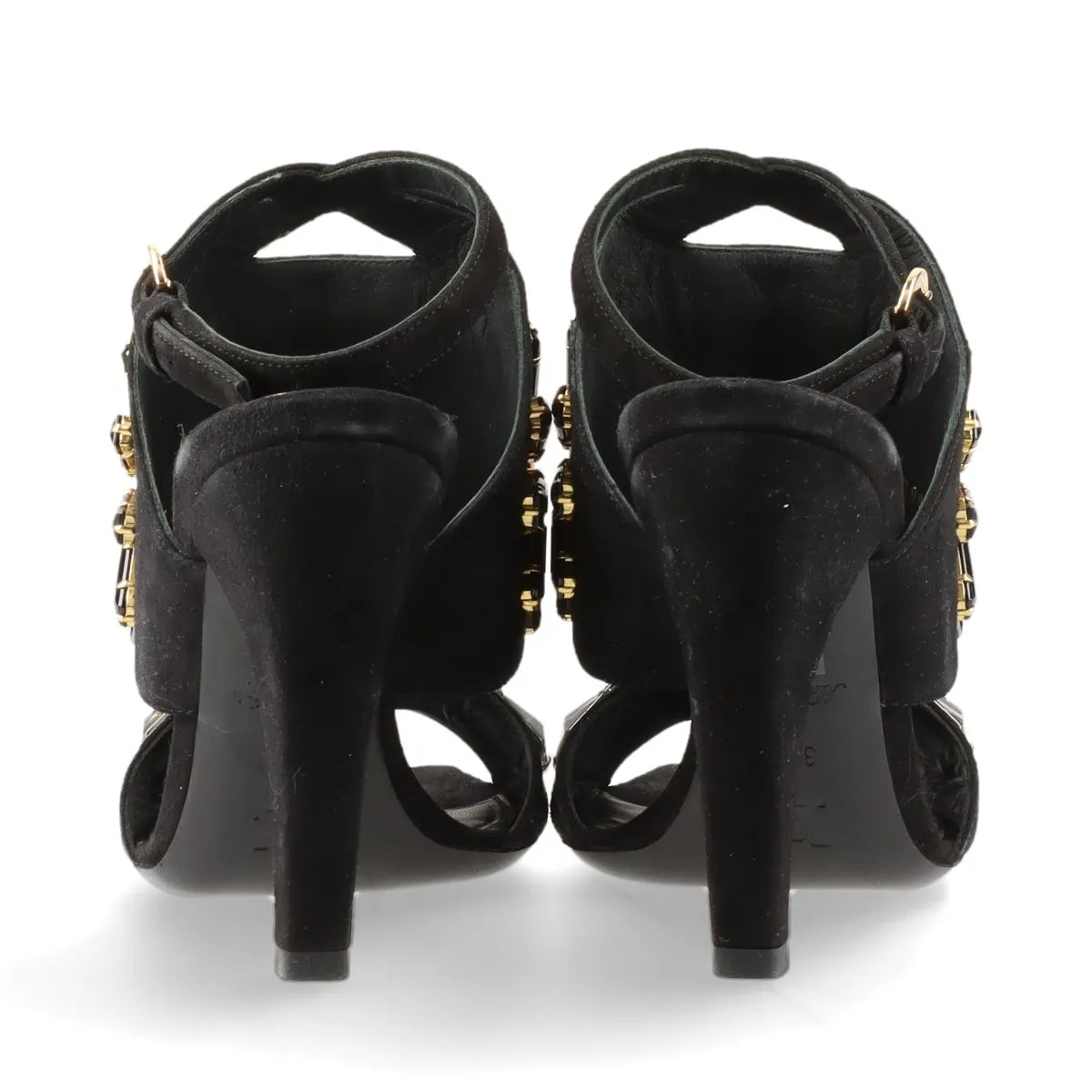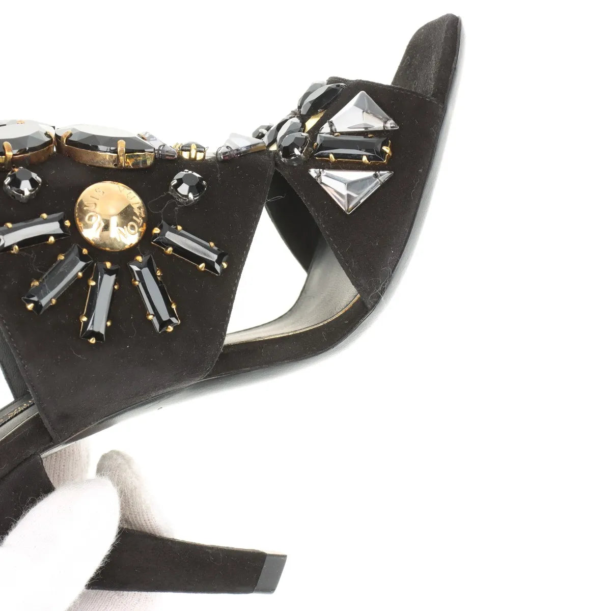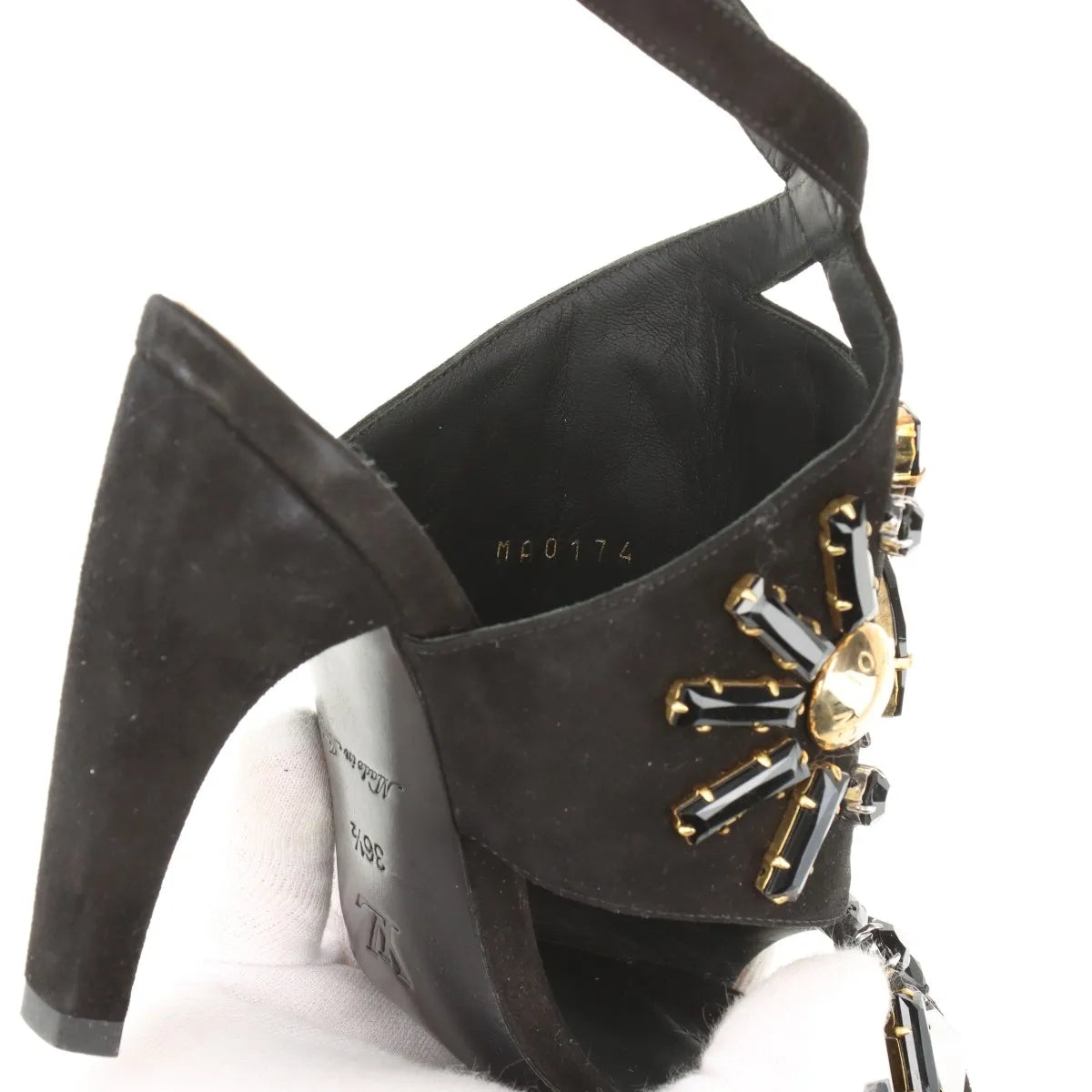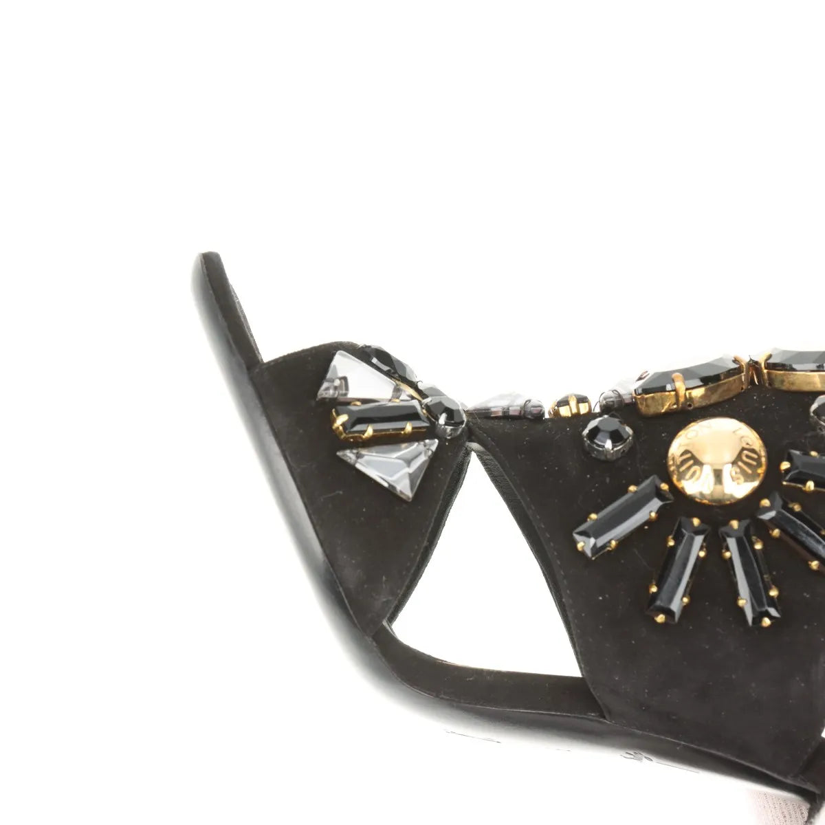 Louis Vuitton Cut Out Crsytal Suede Sandal Black