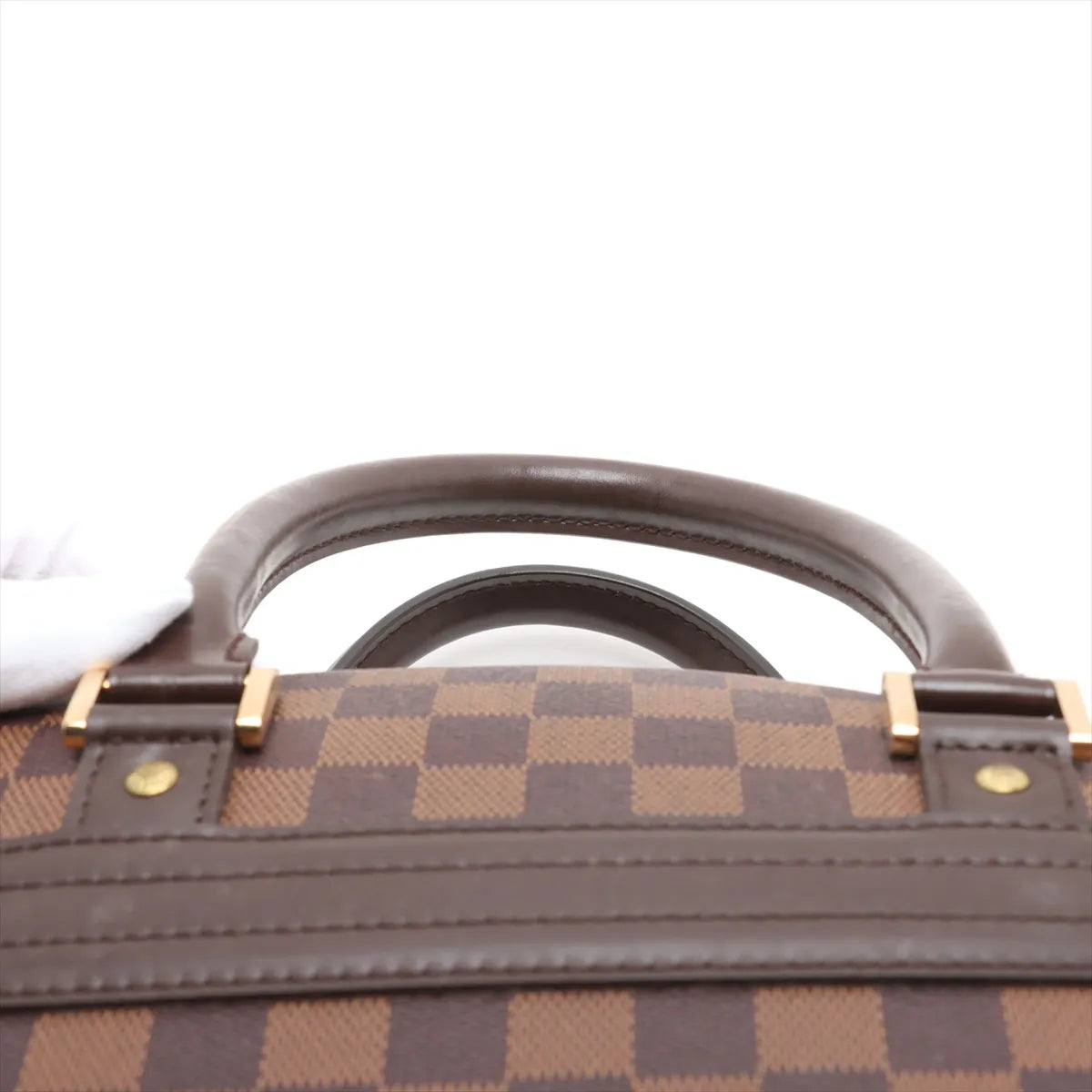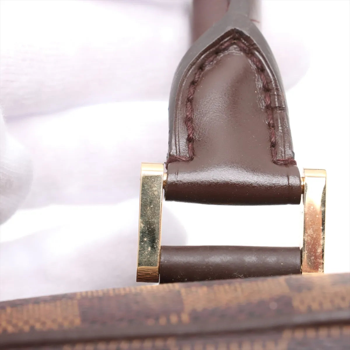 The Louis Vuitton Damier Ebene Nolita 24 is a stylish and functional duffle bag designed for everyday sophistication. Crafted from the iconic Damier Ebene coated canvas, it features elegant leather trims and gold-tone hardware that highlight its timeless appeal. The bag offers a spacious interior, perfect for carrying daily essentials or for short getaways, while maintaining a structured and polished silhouette.