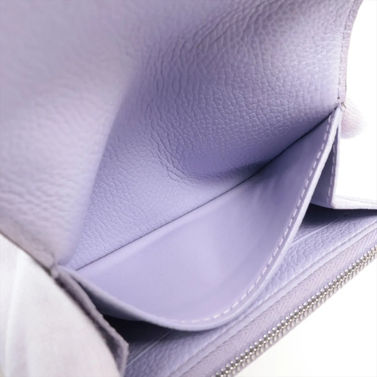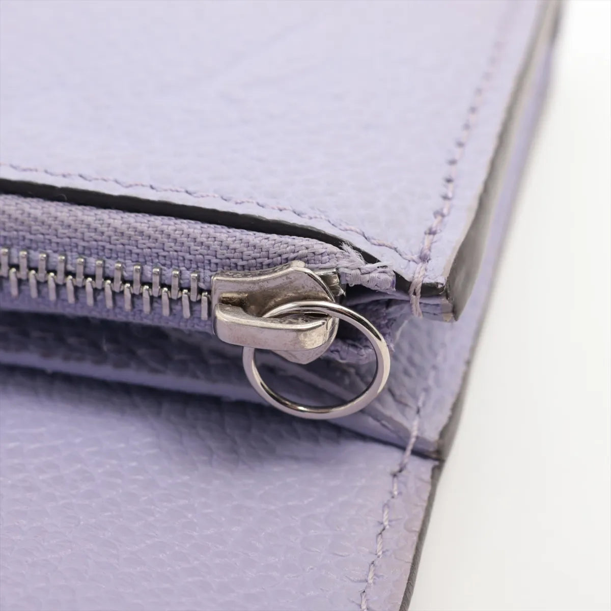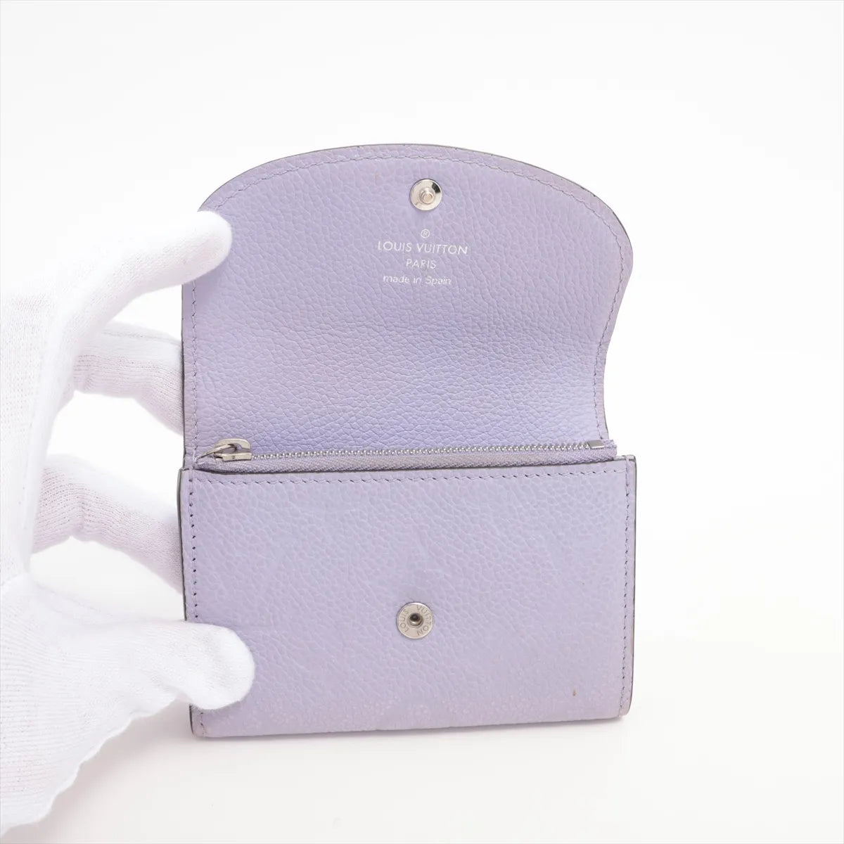 Refined and softly structured, this Louis Vuitton leather wallet is crafted in a delicate pastel lavender hue that adds a subtle pop of color while remaining timeless and elegant. Designed in supple grained leather, it features a curved flap with a polished snap closure and thoughtfully organized interior compartments for everyday essentials.