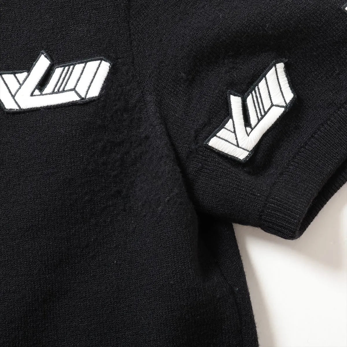 The Louis Vuitton Vitesse Wool T-shirt Dress in Black and White blends sporty aesthetics with refined craftsmanship. Made from soft, breathable wool, the dress features a relaxed T-shirt silhouette that offers both comfort and effortless style. The design is defined by a bold Vitesse logo that runs from the chest to the arm sleeve, creating a striking graphic statement. Contrasting white accents against the black base add visual interest and a streamlined look.