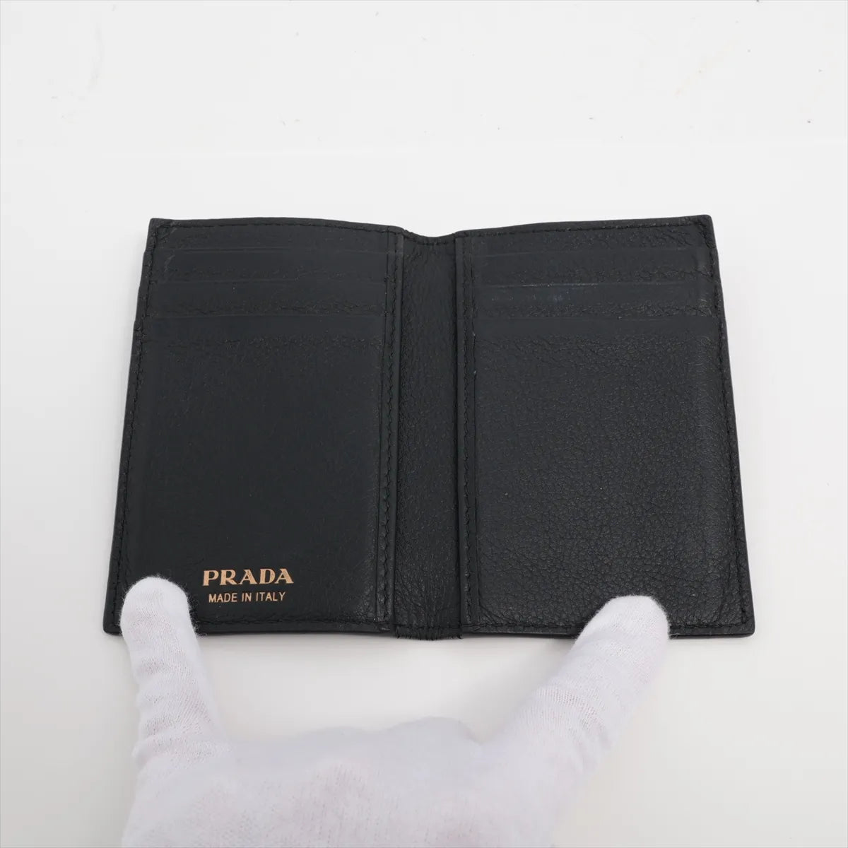 The Prada Logo Leather Card Case in black is a sleek and timeless accessory crafted from premium leather with a refined finish. Designed in a classic bi-fold style, it opens to reveal a surprisingly spacious interior with multiple slots to neatly organize cards and small essentials. Finished with the iconic Prada logo on the front, the card case combines understated elegance with everyday practicality.