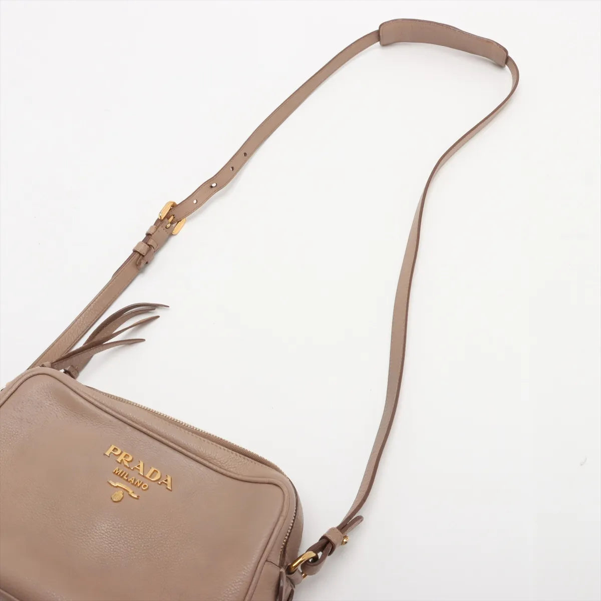 The Prada Vitello Phenix Leather Camera Bag in Beige is a refined and versatile accessory crafted from soft, pebbled Vitello Phenix leather. Its sleek camera bag silhouette offers a spacious interior designed for everyday essentials, while the two zip compartments provide practical organization and easy access.